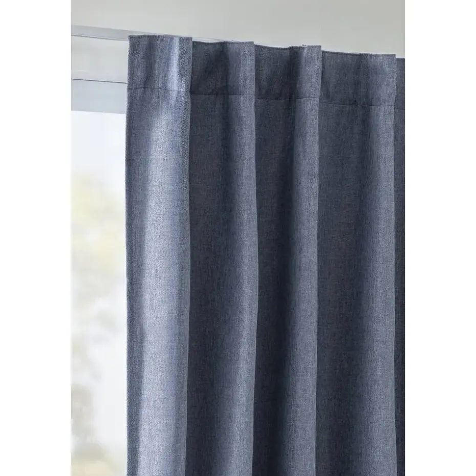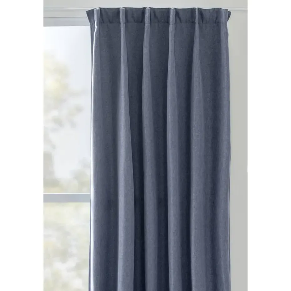 Verduisterend kant en klaar gordijn Miran blauw heeft een warme uitstraling en is gemaakt van 100% polyester. De gordijnstof heeft een linnen look en geeft daardoor een zachte sfeer met zijn prachtige blauwe kleurtint.