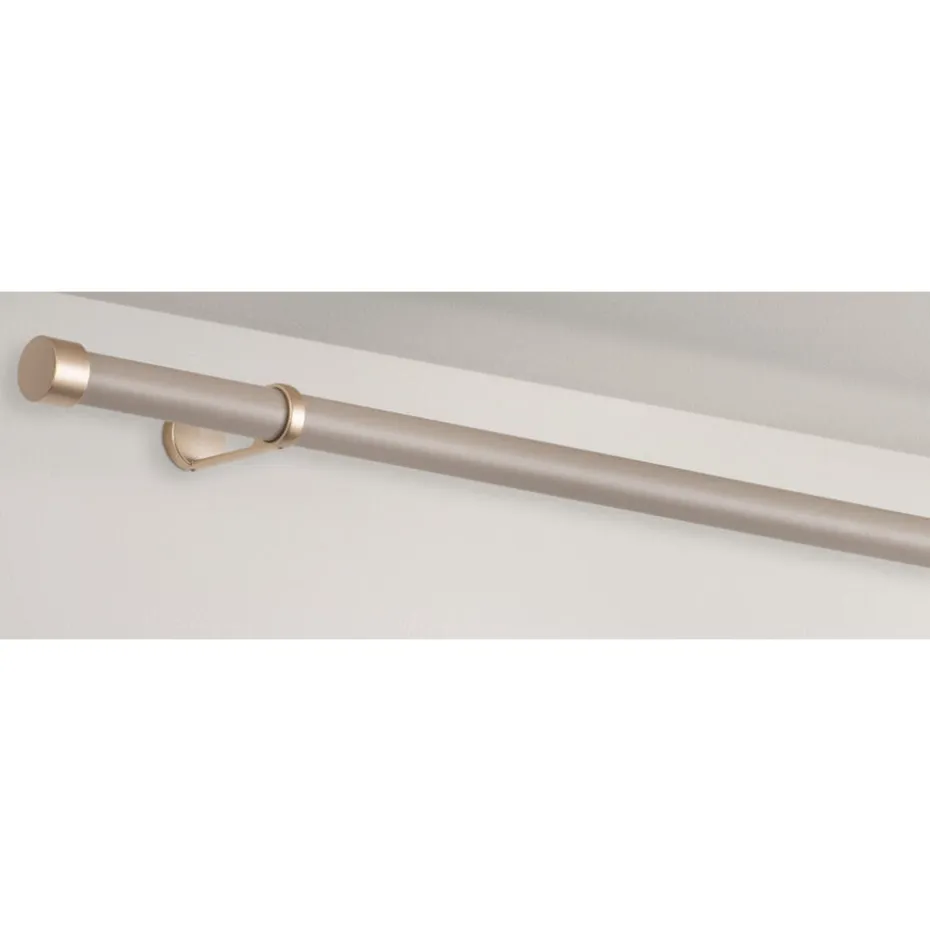 Deze beige metalen gordijnroede (1280109) heeft een rustige uitstraling en is geschikt voor alle ringgordijnen. Of je nu een gordijn hebt met ringen in de stof of zelf ringen aan je stof bevestigt, beide hangen prachtig aan deze roede. De totale lengte is 200cm en de diameter is 28cm. De roede kan op zowel je wand als plafond gemonteerd worden met de daarvoor geschikte wand of plafondsteunen.