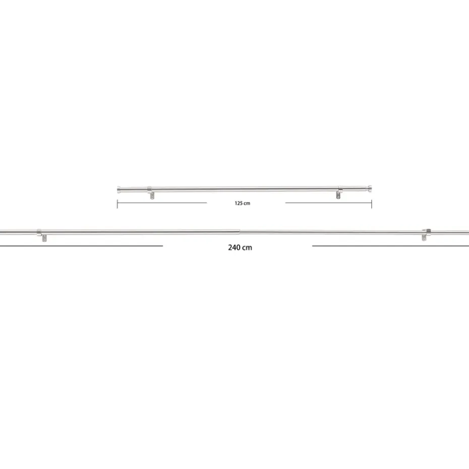 Gordijnroede – Uitschuifbaar – Stang van 125-240 cm – Zilver