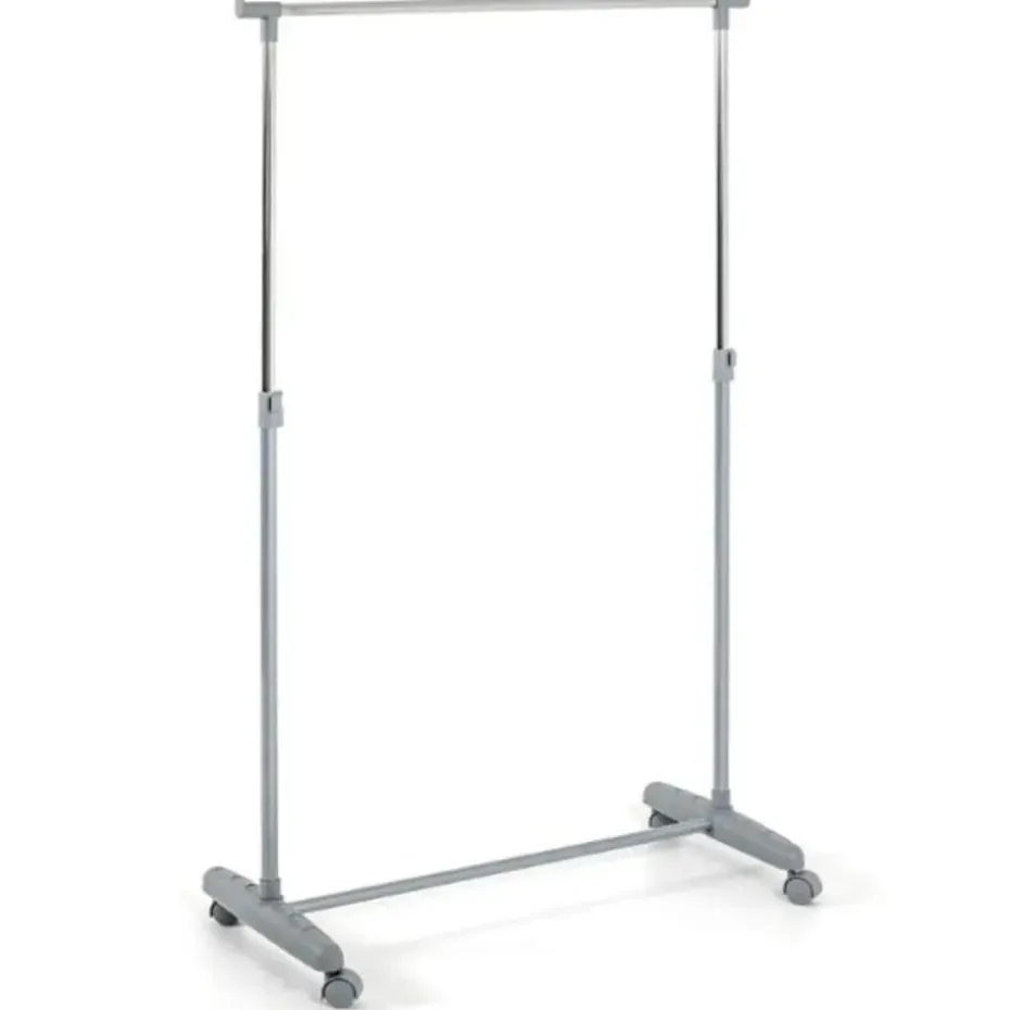 Onze trolleykapstok is de perfecte oplossing om je huis of kantoor georganiseerd te houden. Gemaakt van stevige grijze stalen buizen met een verchroomde kledingroede, is deze kapstok niet alleen duurzaam maar ook stijlvol. De kunststof onderdelen in grijs voegen een modern tintje toe, terwijl de in hoogte verstelbare kapstok van 78 cm voor maximaal gemak zorgt. Zeg maar dag tegen rommelige garderobes en hallo tegen een opgeruimdere ruimte met onze trolleykapstok.