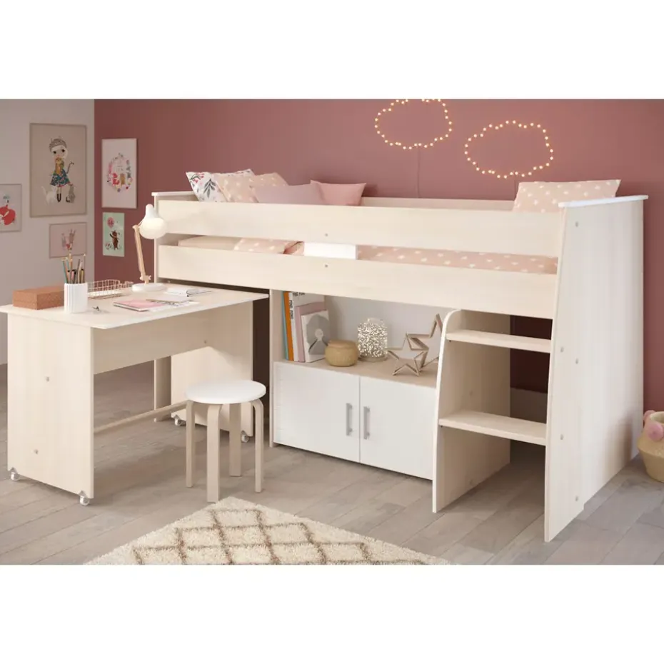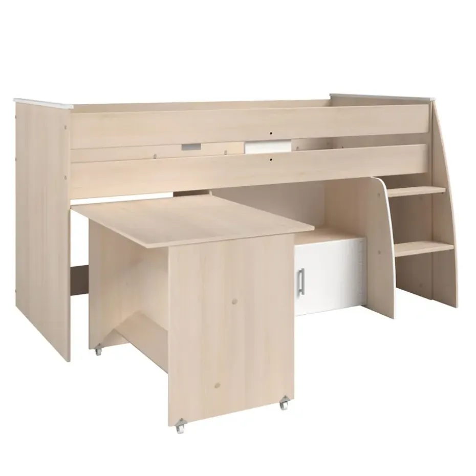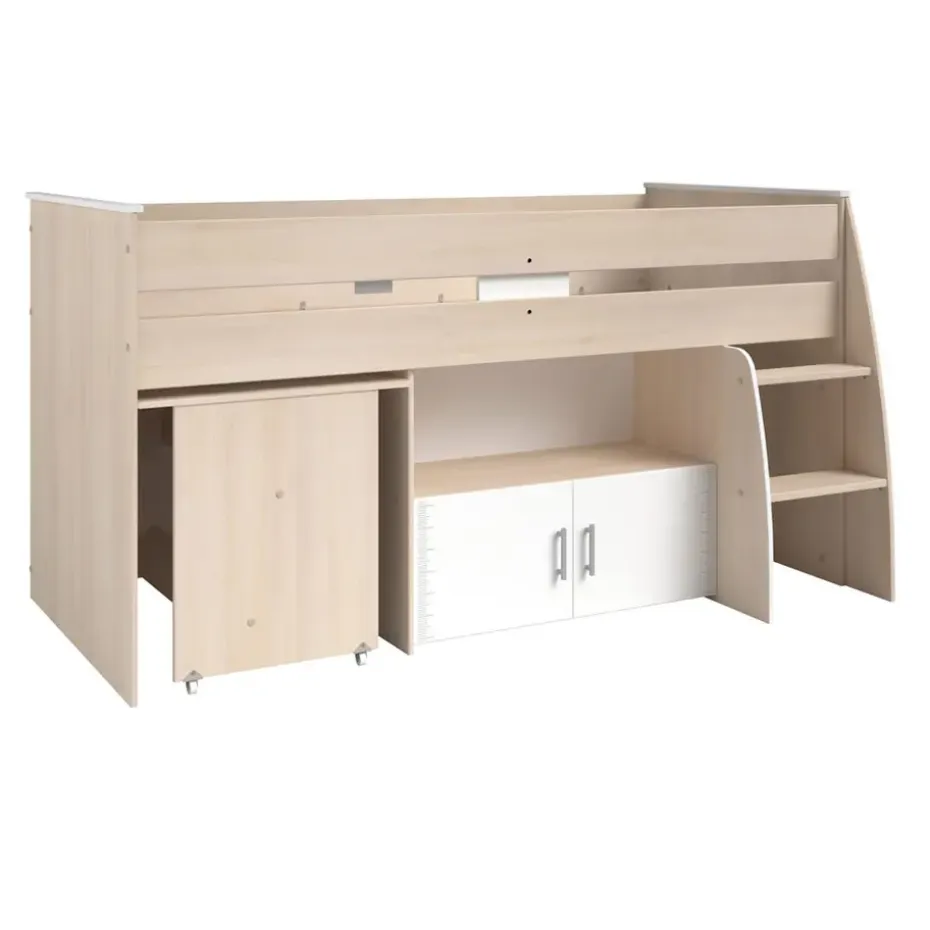 Halfhoogslaper Charly is zeer geschikt voor een opgroeiend kind. Het staat niet alleen leuk en gezellig, je bespaart ook nog eens ruimte. Halfhoogslaper Charly is een bed in acaciakleur met een totale afmeting van 110×113,8×206,3 cm. Het bed is geschikt voor een matras van 90×200 cm. Halfhoogslaper Charly heeft een moderne uitstraling, maar het past in vrijwel ieder interieur. Omdat het bed diverse opbergmogelijkheden biedt, zoals kastjes, heb je genoeg ruimte om diverse spulletjes op te bergen.