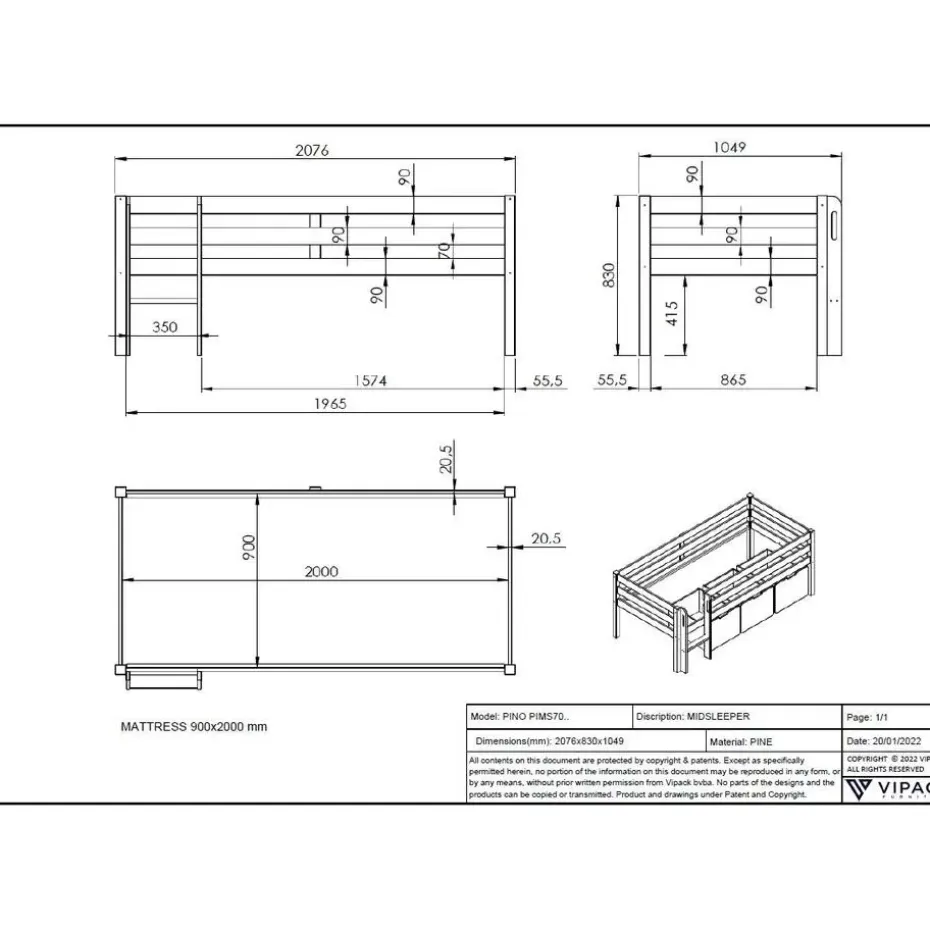 Een halfhoogslaper is de ideale manier op alle ruimte in de kinderkamer optimaal te benutten. Deze halfhoogslaper Pip is gemaakt uit massief dennenhout en is erg stevig. Het bed is voorzien van een laddertje met handgrepen en hoge zijkanten. Hierdoor kan je kind niet uit het bed vallen. Zo slapen ook de ouders op beide oren. De ruimte onder het bed kan gebruikt worden als opbergruimte. Ontdek alle mogelijkheden die de Pim-collectie biedt op onze website.