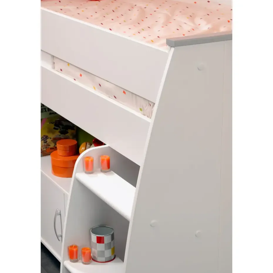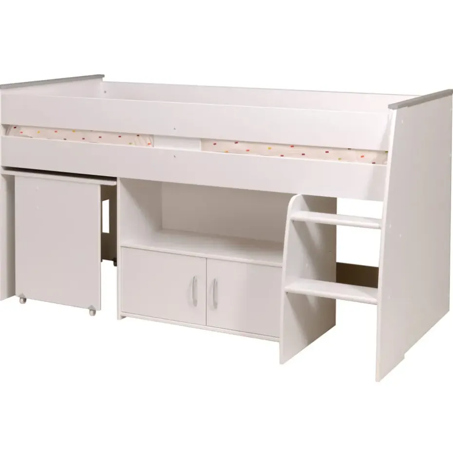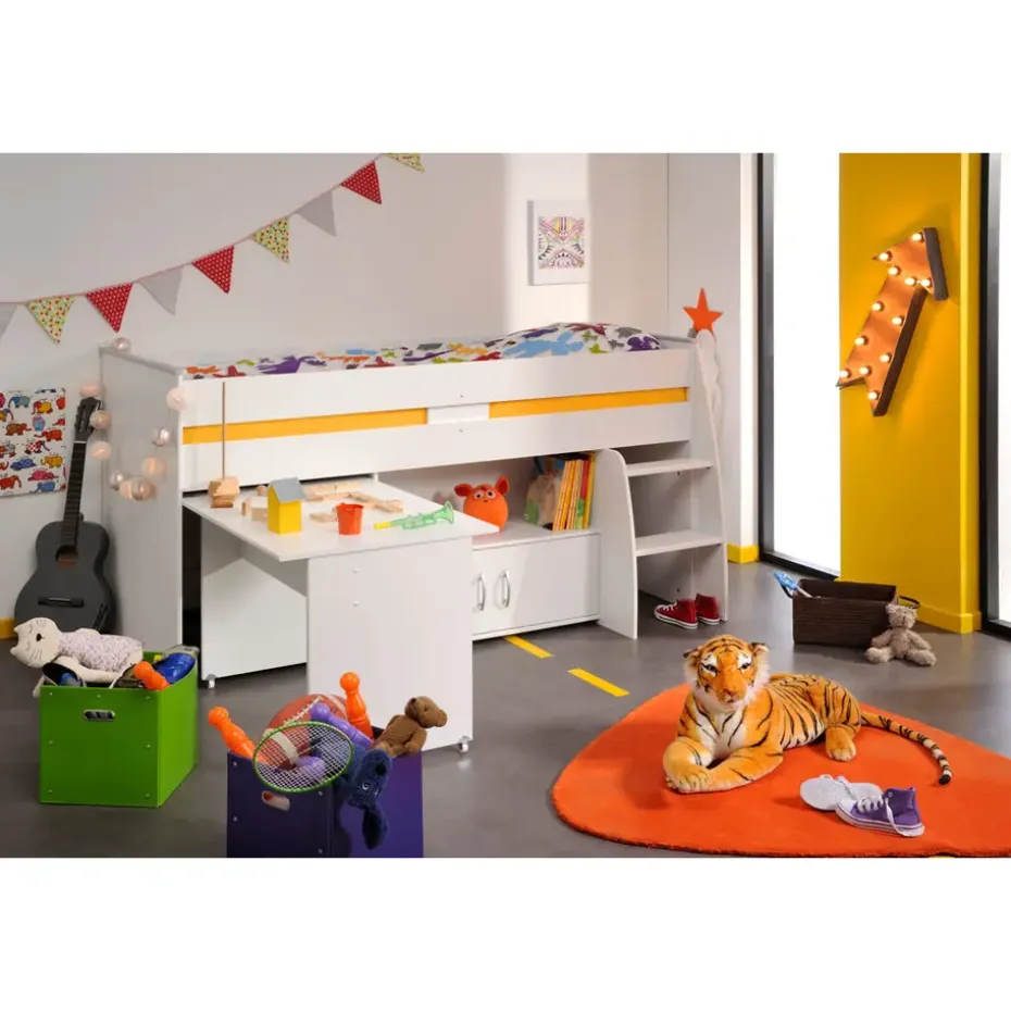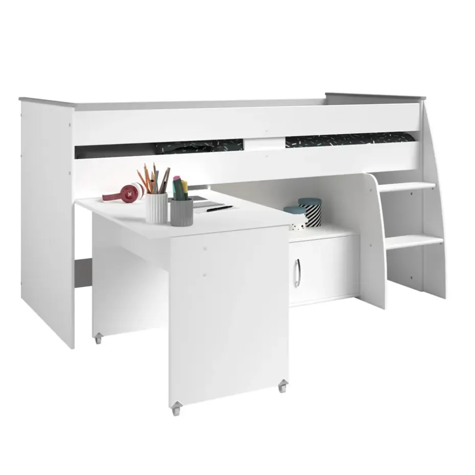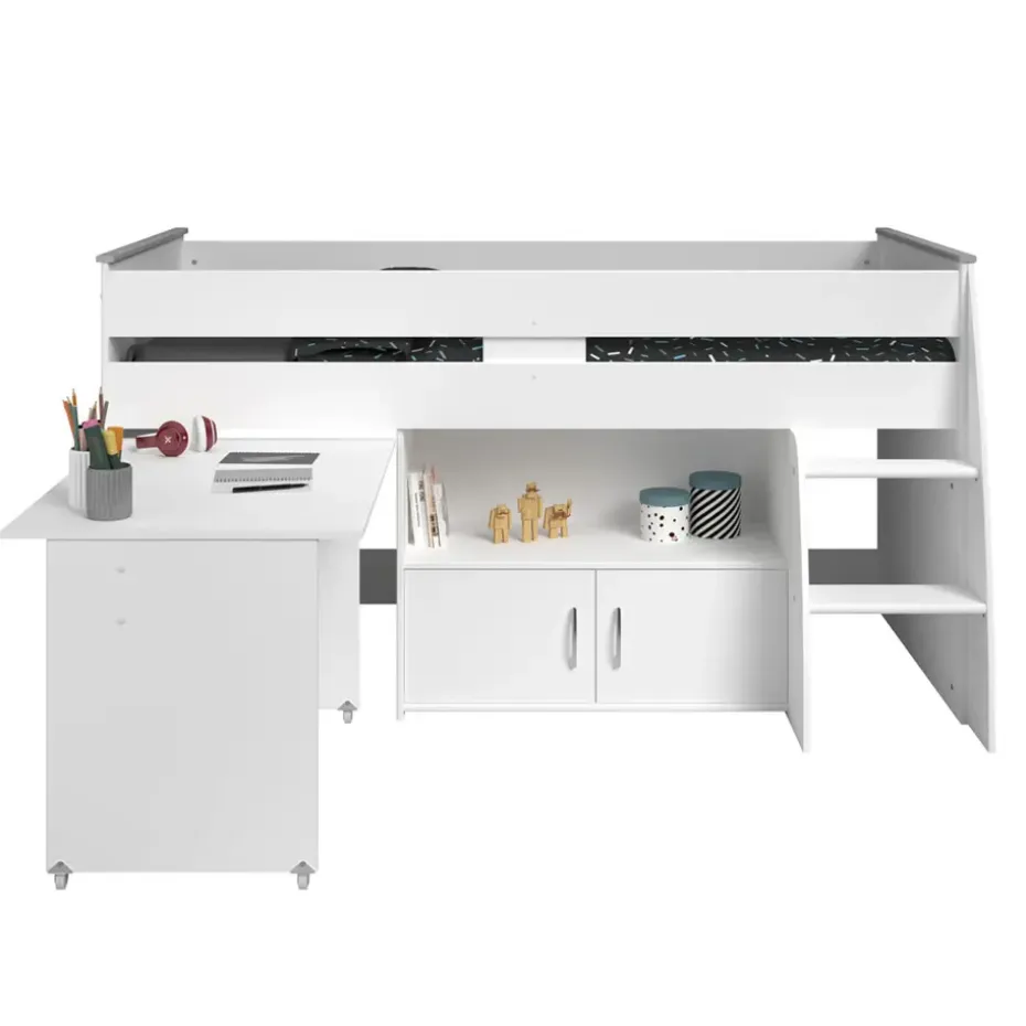 Halfhoogslaper Reverse is zeer geschikt voor een opgroeiend kind. Het staat niet alleen leuk en gezellig, je bespaart ook nog eens ruimte. Halfhoogslaper Reverse is een bed in de kleur wit met een totale afmeting van 110×183,1×206,4 cm. Het bed is geschikt voor een matras van 90×200 cm. Halfhoogslaper Reverse heeft een moderne uitstraling, maar het past in vrijwel ieder interieur. Omdat het bed diverse opbergmogelijkheden biedt, zoals kastjes, heb je genoeg ruimte om diverse spulletjes op te bergen.