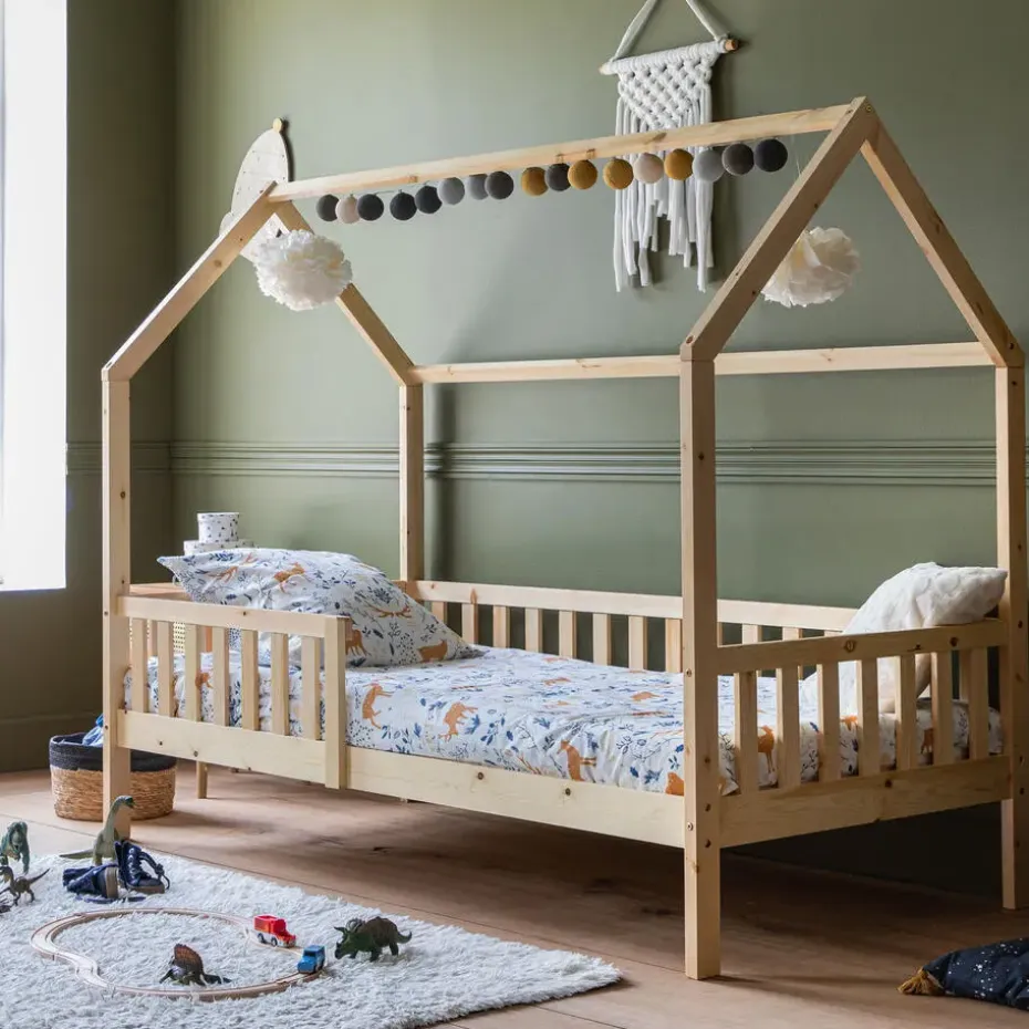 Happy Garden biedt u de mogelijkheid om de slaapkamer van uw kind in te richten met een cabinebed met een origineel en trendy design. Het zal de kleintjes verwelkomen om hen een zachte nachtrust te bezorgen en hen overdag te verwennen. Onze jonge avonturiers zullen duizend en één verhalen kunnen verzinnen dankzij dit kajuitbed van 190 x 90 cm. Het houten meubilair bestaat uit een bedframe en een lattenbodem.
