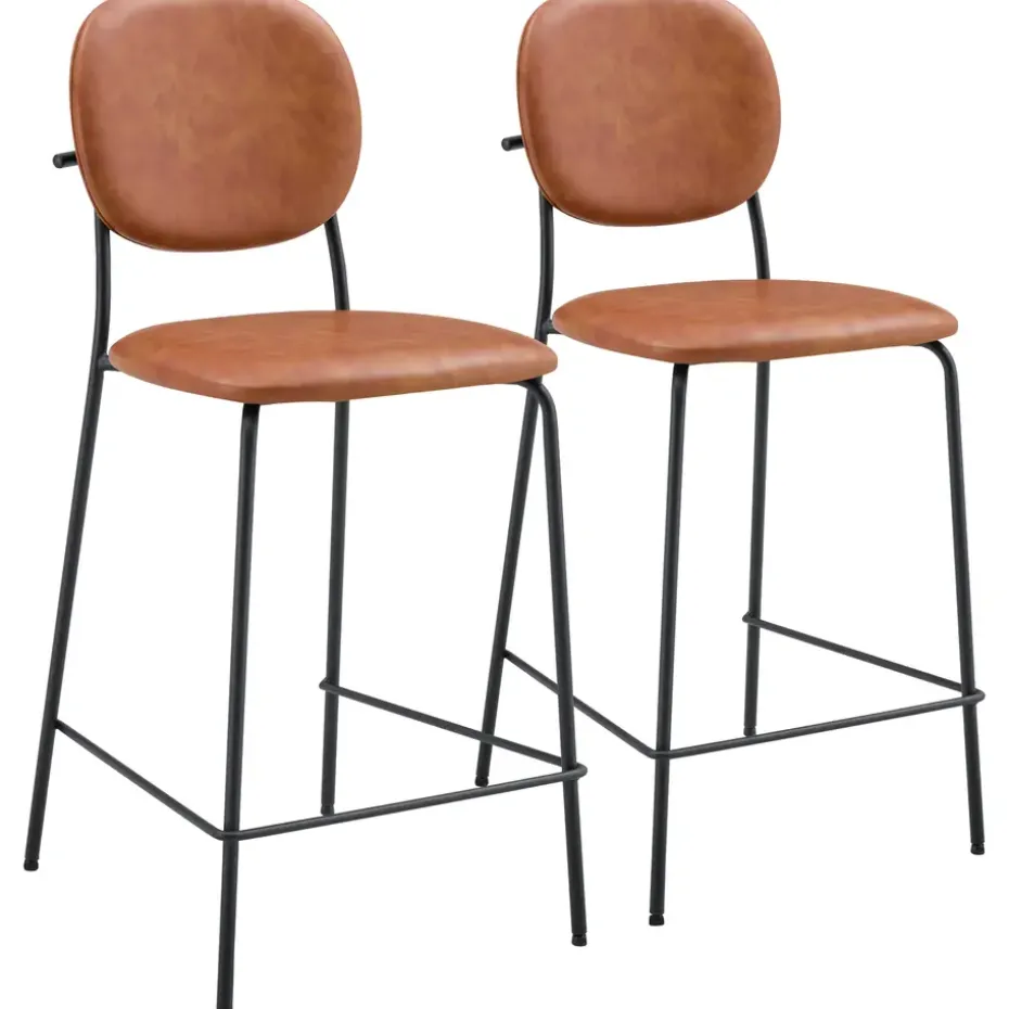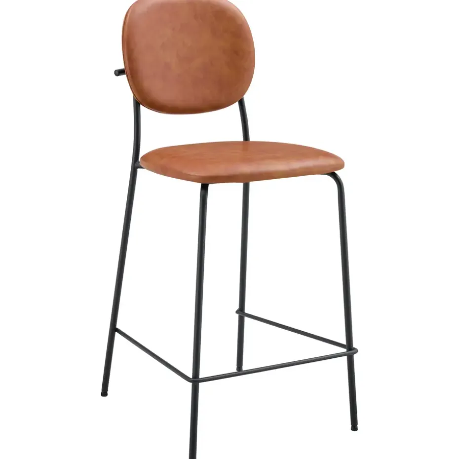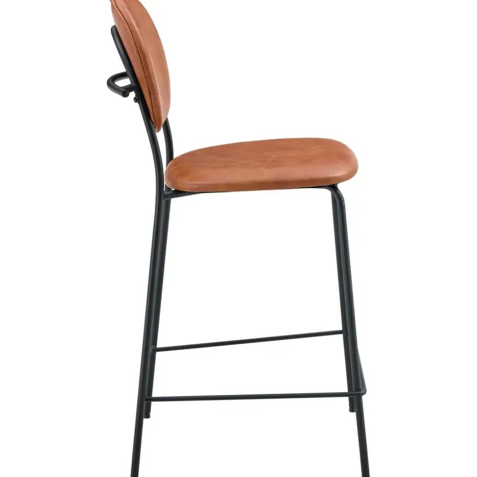 De EDMOND barkrukken zijn bekleed met kunstleer en opgevuld met schuim voor optimaal comfort. De ijzeren poten zorgen voor stabiliteit en stevigheid. Er is ook een voetsteun ingebouwd voor het comfort van de benen. Dankzij hun sobere ontwerp passen deze krukken gemakkelijk in verschillende interieurstijlen. Het contrast tussen de bekleding en de zwarte poten voegt een discreet vleugje elegantie toe aan je ruimte!