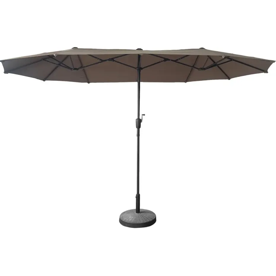 De dubbele parasol LINAI grey is een combinatie van nut en esthetiek en voldoet aan alle eisen voor deze zomer. Het werpt een mooie koele schaduw over een tuinmeubilair of twee kleine tafels, zodat u kunt genieten van ontspannende momenten buiten. Op het gazon of op uw terras creëert het een ideale plek voor pauzes en maaltijden en biedt het tegelijkertijd een goede bescherming tegen de UV-stralen van de zon. Met een zwengel is hij gemakkelijk uit te klappen of op te bergen aan het eind van de dag of tijdens de zomermaanden. Kies deze elegante dubbele parasol om uw buitenruimte te verfraaien.