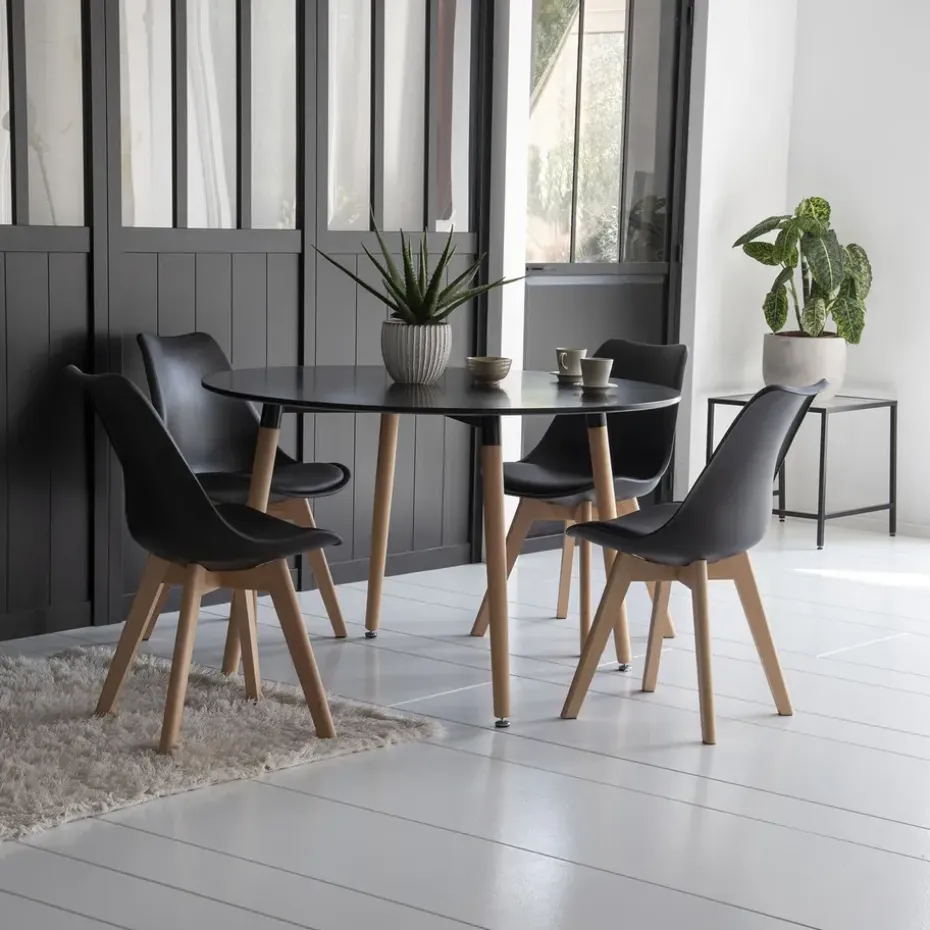 Creëer een warme en vriendelijke ruimte met deze Scandinavische ronde tafel MARTHA. Het tafelblad met een diameter van 120 cm is ideaal voor kleine ruimtes en biedt plaats aan maximaal 4 personen. Zijn schuine poten in licht hout doen denken aan de Scandinavische stijl van de jaren 50. Het zuivere design en de sobere kleuren van deze witte tafel passen perfect bij elke inrichtingsstijl. Voor een totaal Scandinavische look kunt u deze tafel combineren met de NORA stoelen.