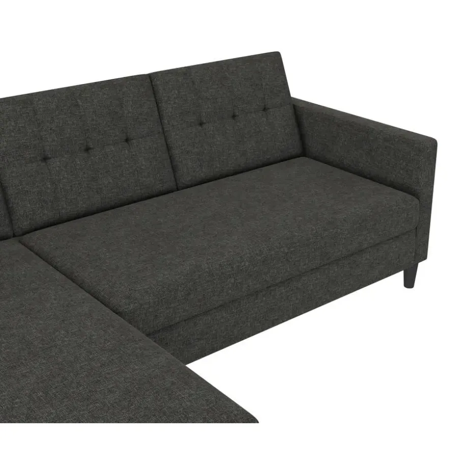 Ontdek de ultieme combinatie van praktisch nut en elegantie met onze 3-zits hoekslaapbank. Dankzij de hoogwaardige golfbasis biedt deze slaapbank uitzonderlijke demping en behoudt hij zijn elasticiteit in de tijd. Pas de rugleuning moeiteloos aan naar je favoriete positie in slechts een paar eenvoudige stappen, en geniet van de flexibiliteit van een verwisselbare chaise longue die zowel aan de rechter- als aan de linkerkant kan worden gemonteerd. Met een maximale draagcapaciteit van 125 kilogram per zitplaats is deze slaapbank ontworpen om robuuste ondersteuning te bieden.