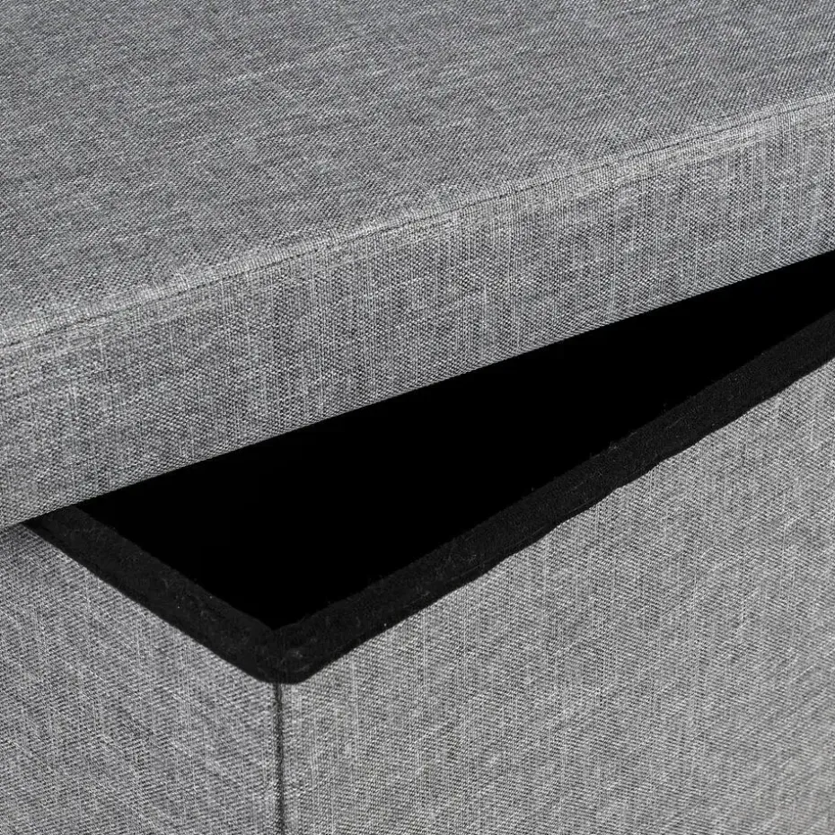 HI poef met opbergruimte waar je ook op kan zitten. Deze opvouwbare poef, ook wel een hocker genoemd is ideaal voor elk huishouden. De poef heeft een afneembare deksel, geeft je extra opbergruimte en is tevens ook te gebruiken als voetenbankje. Bespaar ruimte door bijvoorbeeld speelgoed of dekens erin op te bergen of de poef als zitplek te gebruiken. Een mooie aanvulling voor in huis. Kleur: grijs. Materiaal: polyester en mdf. Afmeting: 76 x 38 x 38 cm. Eenvoudig zelf te monteren. 2-persoons model.