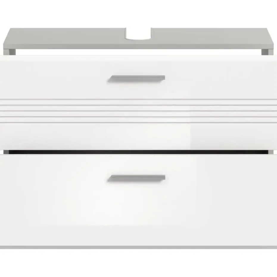 Copa wastafel 2 lades wit hoogglans, lichtgrijs. Zonder wastafel. Lade volledig uitschuifbaar. Ontdek onze premium wastafelkast in elegant lichtgrijs en hoogglans wit, diepgetrokken voor een glanzende afwerking. Met afmetingen van 80 x 56 x 32 cm (B/H/D) biedt hij niet alleen praktische opbergruimte, maar geeft hij ook een moderne touch aan uw badkamer. Deze kast is de perfecte keuze om functionaliteit en stijl te combineren in uw badkamer.