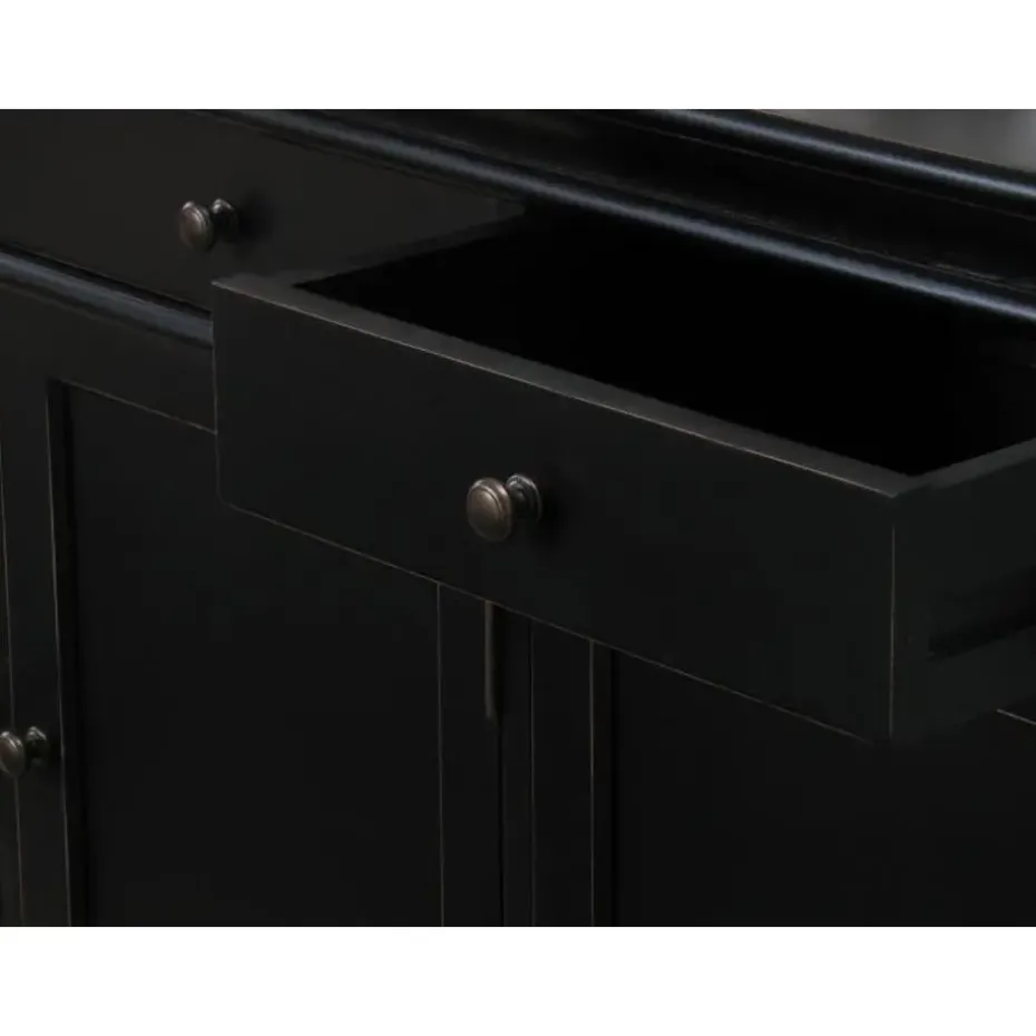 Amaretta dressoir met 3 deuren en 3 laden, zwart antiek patina. Breedte 142 cm, hoogte 86 cm is een dressoir in de kleur zwart, dat zowel stijl als functionaliteit in uw huis brengt. Antiek zwart dressoir uit onze populaire Amaretta serie. Het dressoir is gemaakt van massief hout, antiek gepatineerd en voorzien van metalen handgrepen. Solide kwaliteitsmeubels met ziel. Stijlvol ontwerp met antieke patinatie. Een kwaliteitsmeubel, stijlvol, charmant en solide. Dit product is gemaakt met oog voor detail, wat zowel esthetische aantrekkingskracht als hoge duurzaamheid garandeert. Het is ontworpen met zowel functionaliteit als stijl in gedachten, waardoor het de perfecte keuze is voor elke kamer in uw huis. De gebruikte materialen zijn van hoge kwaliteit, waardoor het product een lange levensduur heeft en bestand is tegen dagelijks gebruik. Of het nu voor opslag is of als decoratieve toevoeging, dit product zal uw interieur naar een hoger niveau tillen en extra comfort en elegantie in uw huis brengen.