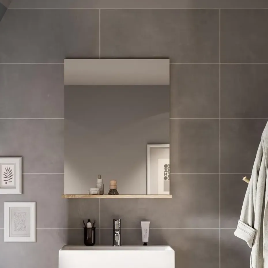 Lambada spiegel bad 1 deur, 1 plank wit hoogglans, eiken decor. Deur omkeerbaar. Stijlvol en modern: onze badkamerspiegel met trendy rookzilveren afwerking is een must-have voor elke moderne badkamer. Met afmetingen van 60 x 79 x 18 cm biedt hij niet alleen functionaliteit, maar ook een vleugje elegantie. Ontdek nu de perfecte spiegel voor uw badkamer!