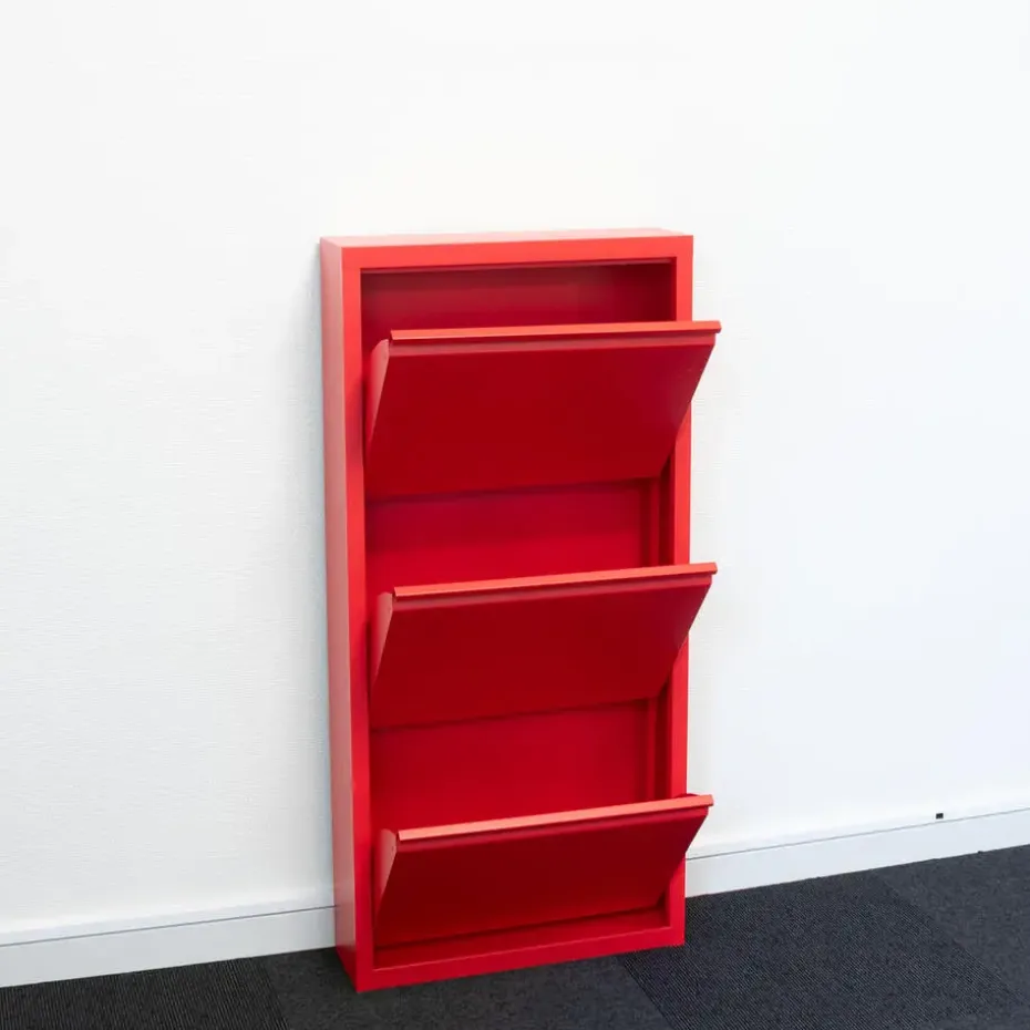 Pisa schoenenkast met 9 deuren in metaal rood. Volledig gemonteerd geleverd is een schoenenkast in de kleur rood, die zowel stijl als functionaliteit in uw huis brengt. Wordt volledig gemonteerd geleverd. Ral 3020 rood. Lade binnenkant: B46/L29/D13 cm. Kan op de vloer worden geplaatst of aan de muur worden gehangen. Kan individueel gebruikt worden. Deuren gaan gelijktijdig open. Dit product is gemaakt met oog voor detail, wat zowel esthetische aantrekkingskracht als hoge duurzaamheid garandeert. Het is ontworpen met zowel functionaliteit als stijl in gedachten, waardoor het de perfecte keuze is voor elke kamer in uw huis. De gebruikte materialen zijn van hoge kwaliteit, waardoor het product een lange levensduur heeft en bestand is tegen dagelijks gebruik. Of het nu voor opslag is of als decoratieve toevoeging, dit product zal uw interieur naar een hoger niveau tillen en extra comfort en elegantie in uw huis brengen.