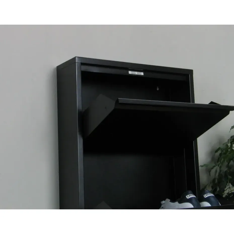 Pisa schoenenkast met 6 deuren in metaal zwart. Volledig gemonteerd geleverd is een schoenenkast in de kleur zwart, die zowel stijl als functionaliteit in uw huis brengt. Onze Pisa schoenenkast met 6 deuren in metaal zwart is gemaakt in een eenvoudig en stijlvol ontwerp. Het meubilair wordt gemonteerd geleverd, zodat u het direct kunt plaatsen wanneer u het ontvangt. De 2 schoenenkasten zijn ook afzonderlijk te gebruiken. Leuke schoenenkast van gepoedercoat metaal, waar je je schoenen ruimtebesparend in kunt opbergen. Met deze slimme schoenenkast beheer je de schoenenopbergers in de inkomhal, bijkeuken of slaapkamer. Alle deuren van elke afzonderlijke schoenenkast gaan tegelijkertijd open. Je kunt de schoenenkast op de grond plaatsen en aan de muur bevestigen, of je kunt de schoenenkast aan de muur hangen. Met onze Pisa schoenenkasten kun je eventueel je eigen persoonlijke stijl in huis creëren samen met enkele leuke woonaccessoires. Je maakt deel uit van de mode en maakt deel uit van de nieuwe woontrends, zoals je die ziet in tijdschriften en woonmagazines. Dit product is gemaakt met oog voor detail, wat zowel esthetische aantrekkingskracht als hoge duurzaamheid garandeert. Het is ontworpen met zowel functionaliteit als stijl in gedachten, waardoor het de perfecte keuze is voor elke kamer in uw huis. De gebruikte materialen zijn van hoge kwaliteit, waardoor het product een lange levensduur heeft en bestand is tegen dagelijks gebruik. Of het nu voor opslag is of als decoratieve toevoeging, dit product zal uw interieur naar een hoger niveau tillen en extra comfort en elegantie in uw huis brengen.