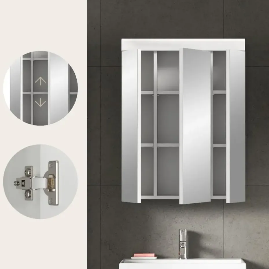 Scout spiegelkast 3 spiegeldeuren wit hoogglans, wit. Deur omkeerbaar. In ons trendy assortiment vindt u de ultieme badkamerspiegelkast in een moderne witte afwerking met een hoogglanzend, diepgetrokken oppervlak. Met afmetingen van 60 x 79 x 18 cm is het niet alleen een functionele spiegel, maar ook een stijlvolle accessoire voor uw badkamer. Ervaar de perfecte combinatie van modern design en functionaliteit met onze trendy spiegelkast.