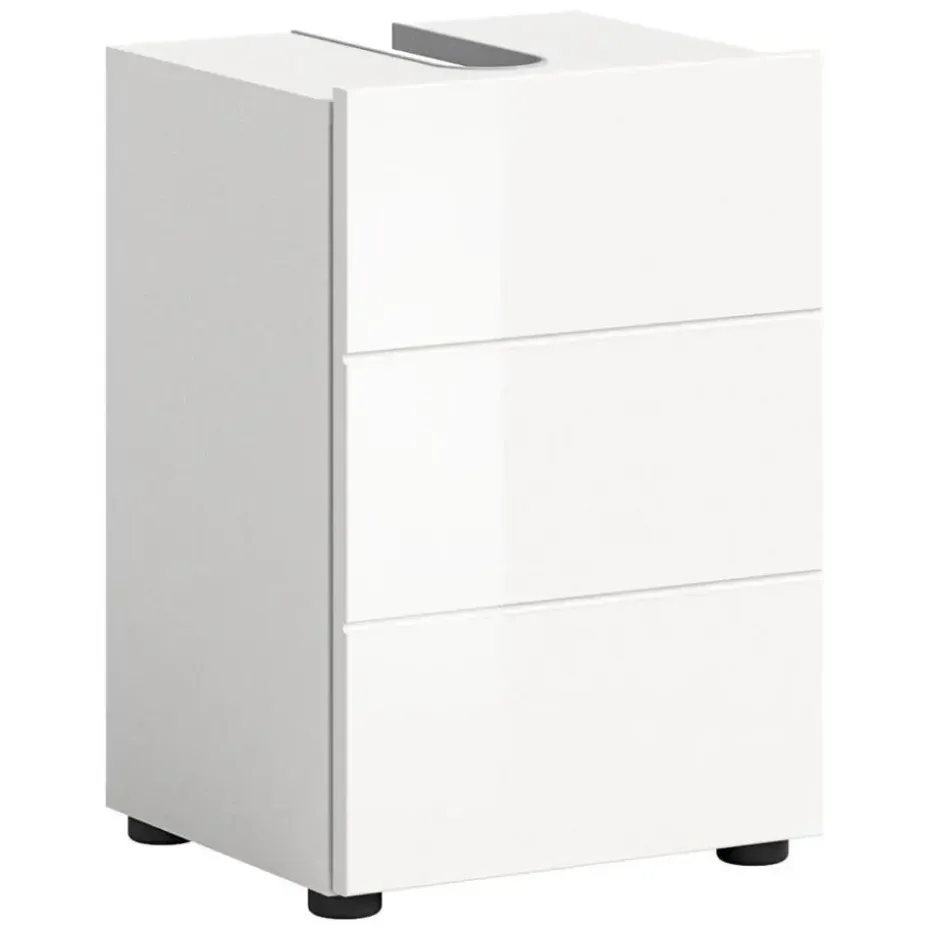 Vira wastafel 1 deur wit hoogglans, wit. Zonder wastafel. Deur omkeerbaar. Geef je badkamer een nieuwe look met ons stijlvolle witte melamine wastafelmeubel met een hoogglanzende, diepgetrokken afwerking. De compacte afmetingen passen perfect onder je wastafel en bieden tegelijkertijd voldoende opbergruimte voor al je badkamerbenodigdheden. Voeg een vleugje elegantie en functionele verfijning toe aan je badkamer met dit moderne meubel.