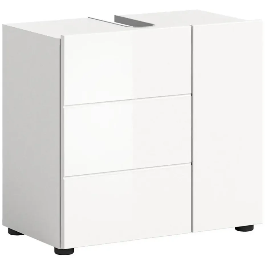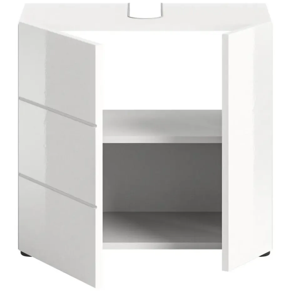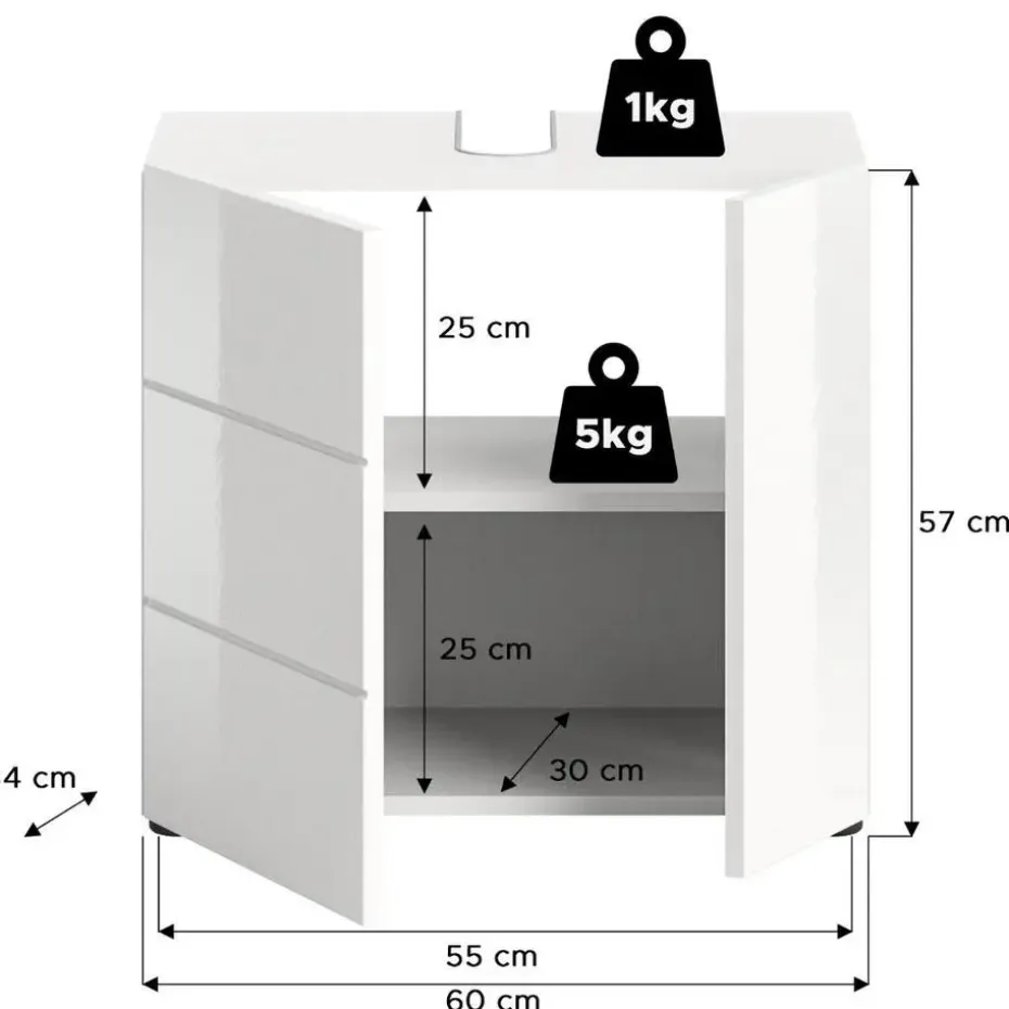 Vira wastafel 2 deuren wit hoogglans, wit. Zonder wastafel. Deur omkeerbaar. Geef je badkamer een nieuwe look met ons stijlvolle witte melamine wastafelmeubel met een hoogglanzende, diepgetrokken afwerking. De compacte afmetingen passen perfect onder je wastafel en bieden tegelijkertijd voldoende opbergruimte voor al je badkamerbenodigdheden. Voeg een vleugje elegantie en functionele verfijning toe aan je badkamer met dit moderne meubel.
