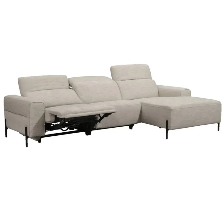 Bank Dave is de perfecte hoekbank voor wie op zoek is naar een comfortabele bank met elektrisch verstelbare voeten- en rugleuningen. De lichtgrijs kleurige stof heeft een speels effect en geeft de bank een trendy uitstraling. Of je nu met de voetjes omhoog een film kijkt of liever in de rechterhoek van deze bank ontspannen een boek leest, bank Dave biedt ultiem comfort.