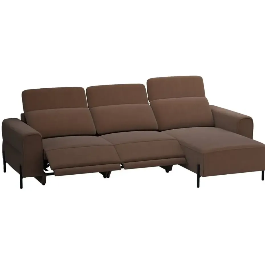 Bank Dave is de perfecte hoekbank voor wie op zoek is naar een comfortabele bank met elektrisch verstelbare voeten en rugleuningen. De cognackleurige stof Billy Joe heeft een speels effect en geeft de bank een trendy uitstraling. Of je nu met de voetjes omhoog een film kijkt of liever in de rechterhoek van deze bank ontspannen een boek leest, bank Dave biedt ultiem comfort.
