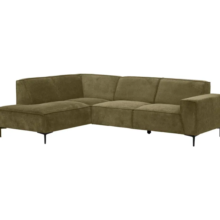 Hoekbank Romy heeft een sfeervolle en moderne uitstraling in een trendy groenkleurige stof. De bank heeft een hoek aan de linkerkant en is voorzien van slanke metalen poten. Deze ruime hoekbank is perfect voor het hele gezin. Als jij houdt van een bank met veel comfort en een moderne uitstraling, dan is deze bank een echte musthave!