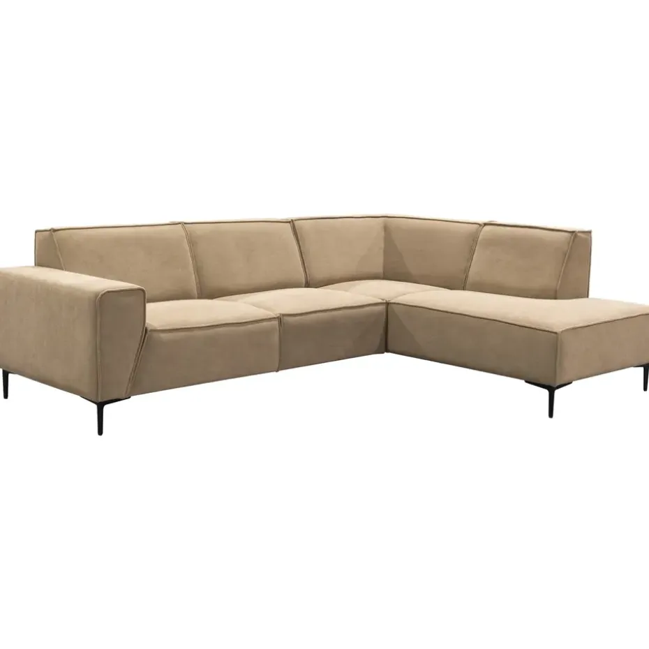 Hoekbank Romy heeft een sfeervolle en moderne uitstraling in een trendy beigekleurige stof. De bank heeft een hoek aan de rechterkant en is voorzien van slanke metalen poten. Deze ruime hoekbank is perfect voor het hele gezin. Als jij houdt van een bank met veel comfort en een moderne uitstraling, dan is deze bank een echte musthave!
