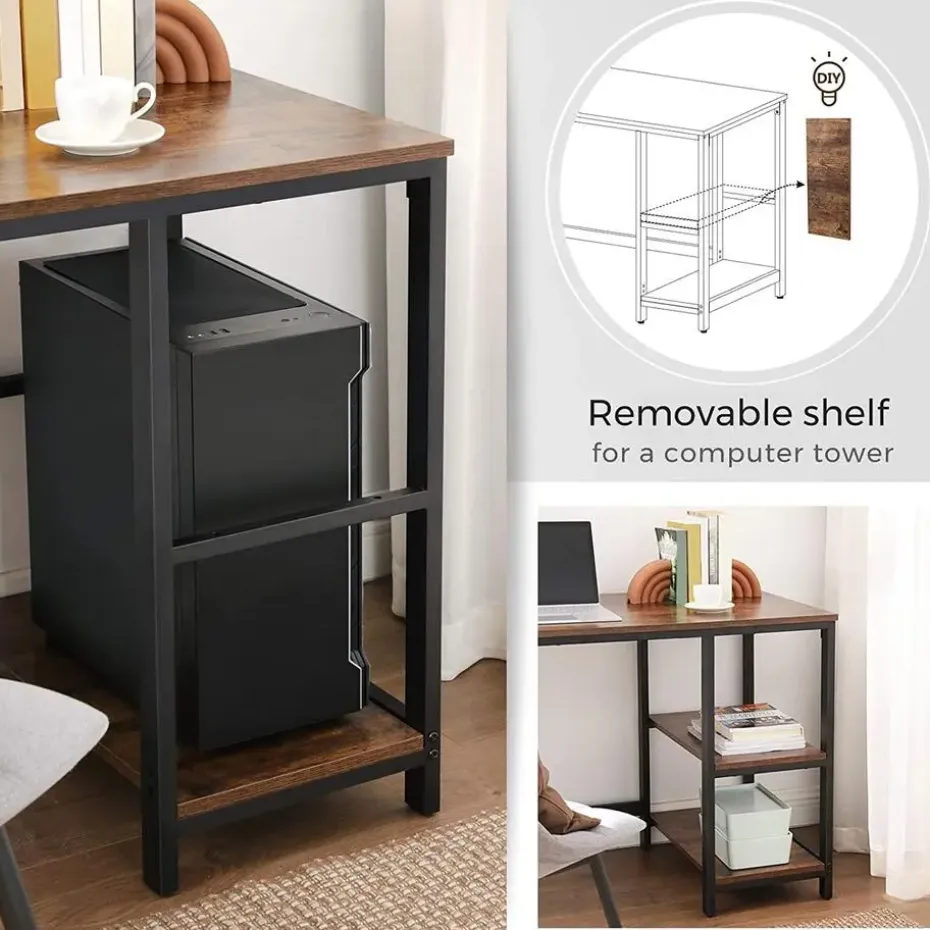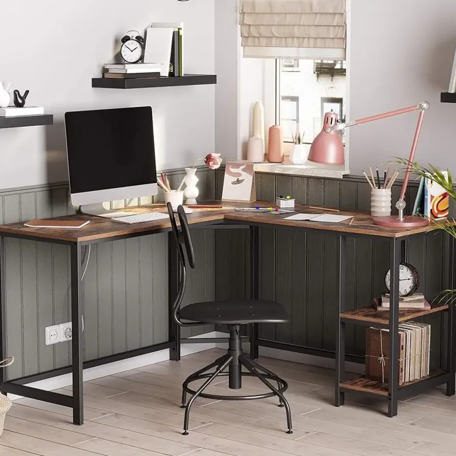 Je thuiskantoor heeft nood aan een upgrade? Dit hoekbureau combineert rustiek bruin spaanplaat met zwart staal voor een industrial chique look. Dankzij z’n L-vorm benut je de beschikbare ruimte in je kantoor bovendien ten volle. De bovenste legplank van het bureau is uitneembaar, zodat je hier je computer kunt plaatsen. Het kan niet anders dan dat aan dit bureau goede ideeën ontstaan!
