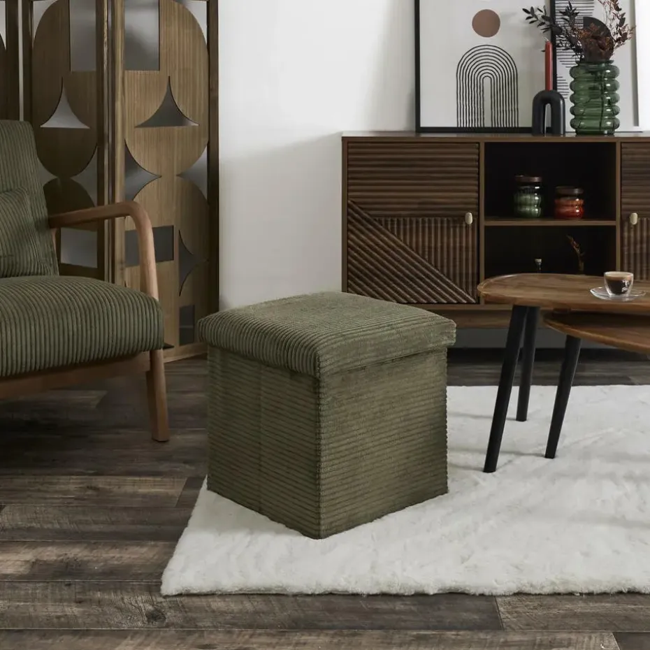 Home Deco Factory poefje met opbergruimte waar je ook op kunt zitten. Deze opvouwbare vierkante poef, ook wel een hocker genoemd is ideaal voor elk huishouden. De poef heeft een afneembare deksel, geeft je extra opbergruimte en is tevens te gebruiken als voetenbankje. Bespaar ruimte door bijvoorbeeld speelgoed of dekens erin op te bergen of de poef als zitplek te gebruiken. Een mooie aanvulling voor in huis. Kleur: groen. Materiaal: polyester en mdf. Afmeting: ca. 38 x 38 x 38 cm.