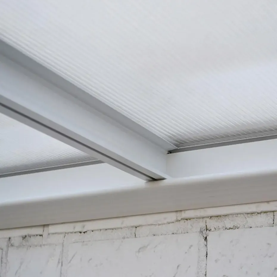 We bieden bewust vijf verschillende breedtes aan, zodat bijna elke gewenste installatielocatie qua oppervlakte mogelijk is. De volledige terrasoverkapping is ontworpen als bouwpakket. Dit omvat alle benodigde onderdelen: aluminium kijkrails (roestvrij, lichtgewicht en zeer stabiel). Daarnaast zijn er verbindingsplaten, beugels, U-rails, schroeven, pluggen, bouten, doppen, regenwaterafvoer en dubbelwandige dubbelwandige platen.
