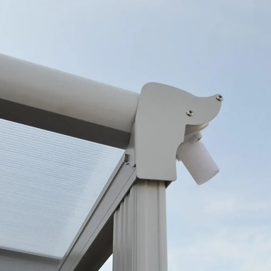 * In tegenstelling tot sommige houten overkappingen zijn onze terrasoverkappingen van gegalvaniseerd staal, aluminium met poedercoating en polycarbonaatplaten met UV-bescherming duurzaam en resistent.