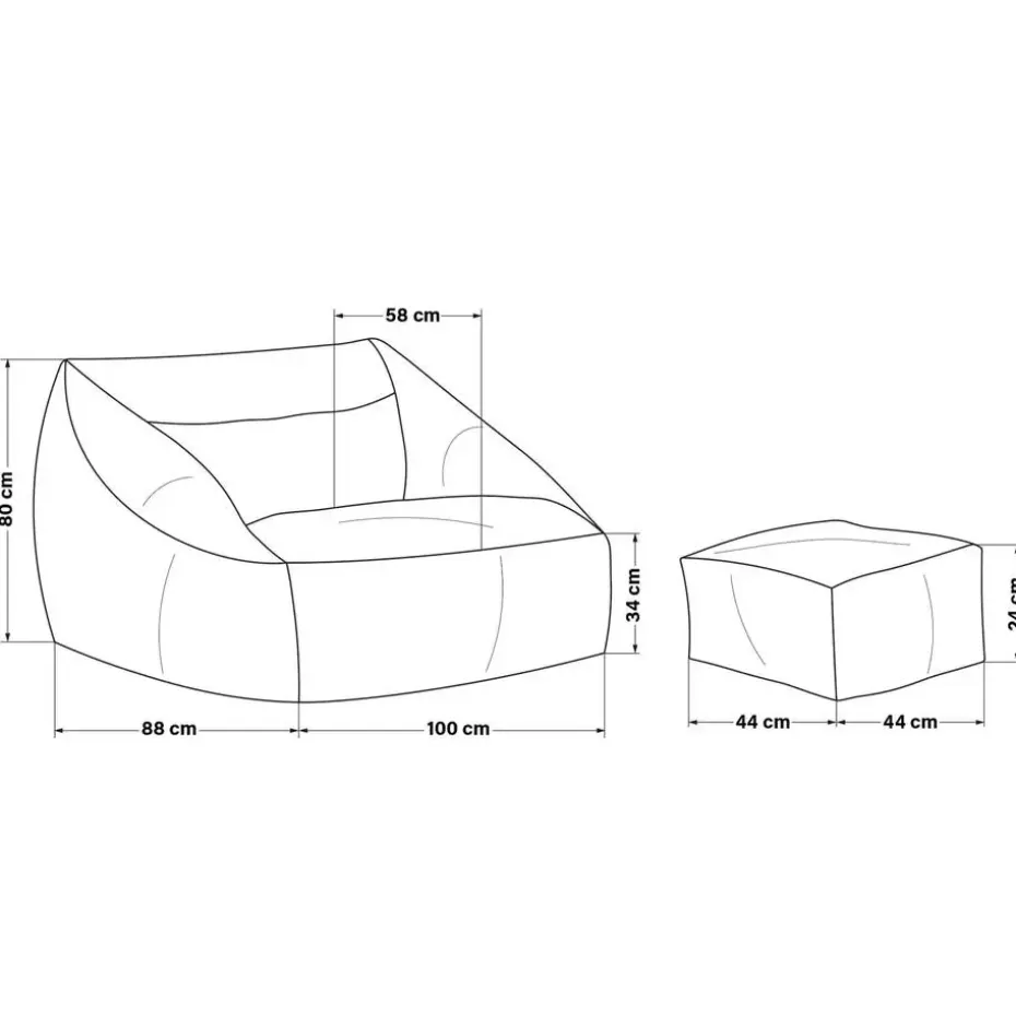 * Afmetingen zitzak (L x B x H): 100 x 88 x 80 cm
