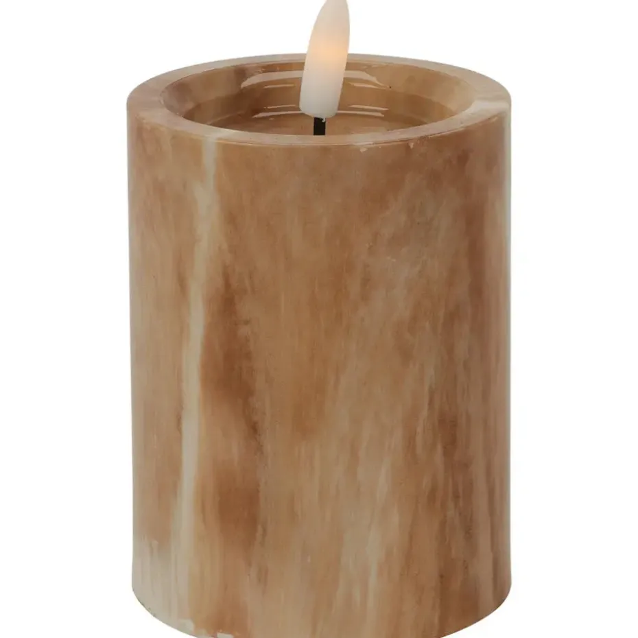 LED kaars/stompkaars in marmerlook. Deze luxe LED kaars is een echte must-have voor elk interieur. De bruine kaars heeft een prachtige marmerlook. wat een elegant en modern uiterlijk geeft. De kaars is 7,5 cm in diameter en 10 cm hoog, en geeft een warm wit licht. Met de timer kun je de kaars programmeren om automatisch aan te gaan en uit te gaan. Voeding: 2 AA batterijen (niet inbegrepen).