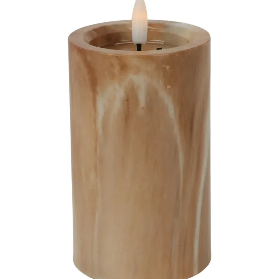 LED kaars/stompkaars in marmerlook. Deze luxe LED kaars is een echte must-have voor elk interieur. De bruine kaars heeft een prachtige marmerlook. wat een elegant en modern uiterlijk geeft. De kaars is 7,5 cm in diameter en 12,5 cm hoog, en geeft een warm wit licht. Met de timer kun je de kaars programmeren om automatisch aan te gaan en uit te gaan. Voeding: 2 AA batterijen (niet inbegrepen).