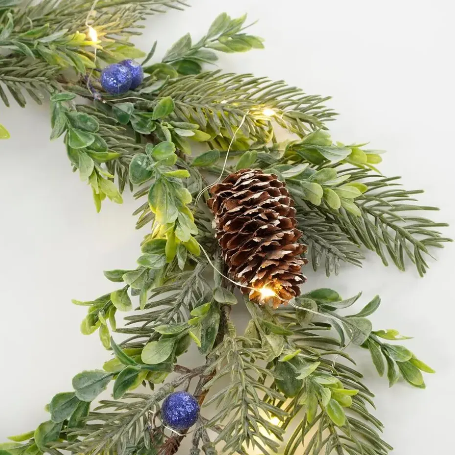 Wil jij tijdens de feestdagen ook genieten van een prachtig versierde kerstkrans? Dan hebben wij dé oplossing voor jou: de kerstkrans van House of Seasons! Deze krans is namelijk al voorzien van mooie, groene dennentakjes, dennenappels en blauwe besjes. In de krans zitten daarnaast 15 energiezuinige LED lampjes verwerkt die een warm wit licht uitstralen. De verlichting werkt op 2 AA batterijen. Ideaal! De krans heeft een diameter van 42 cm en is 7 cm hoog, perfect om op te hangen of te gebruiken als basis voor een kerststukje. Het grote voordeel is ook dat je hem elk jaar weer opnieuw kunt gebruiken! Ook leuk om te combineren met meerdere kerstdecoratie artikelen uit de collectie van House of Seasons om een stijlvolle kerstsfeer in huis te creëren.