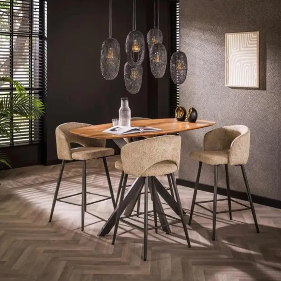 Deze prachtige bartafel is uitgevoerd in massief acaciahout. Er is voor een Deens ovaal blad gekozen met een spider frame. Echt een eye-catcher! De tafel is uitgevoerd in 140 cm en heeft ook twee eetkamertafel uitvoeringen van 180 en 215 cm.