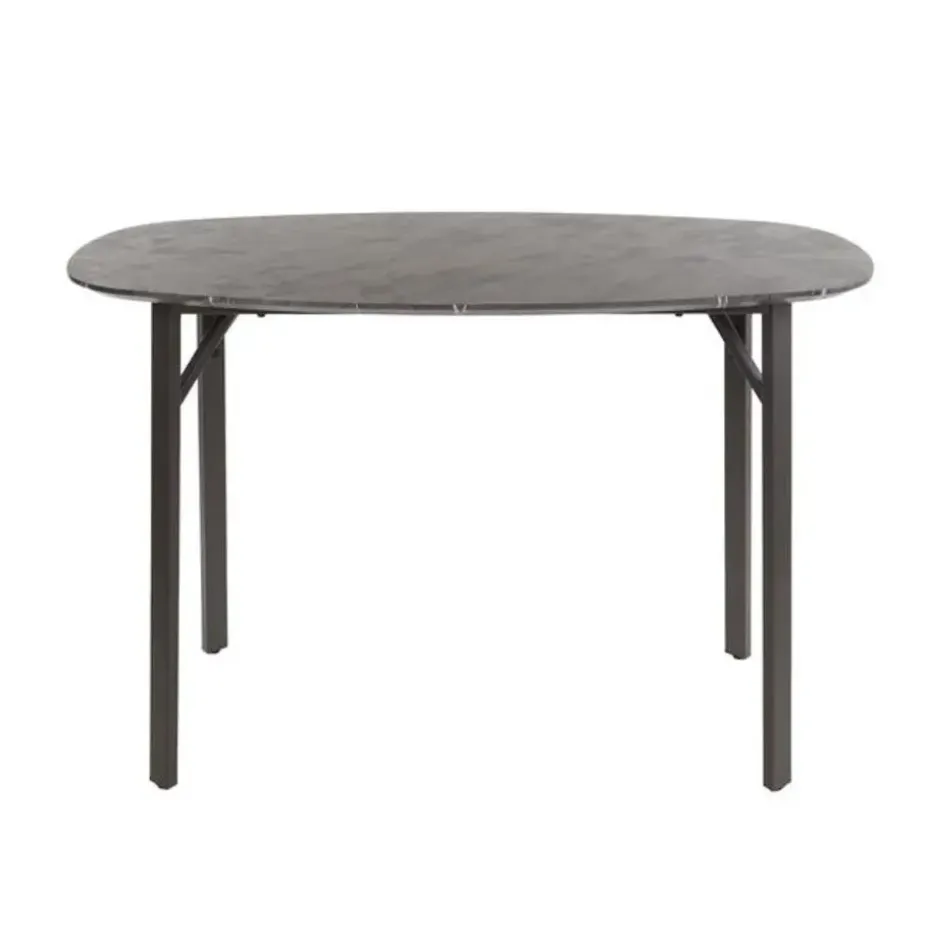 Deze bartafel is uitgevoerd in melamine met een keramiek uitstraling en een rechthoekig frame in staal. De tafel is haast niet te onderscheiden van een keramiek tafel. Het handgemaakte tafelblad is voorzien van een laagje melaminehars dat is aangebracht op hout. Het materiaal wordt door hitte en druk aangebracht. Het prachtige materiaal in combinatie met de deens ovale vorm, geeft een trendy, maar tegelijk ook tijdloze tafel.