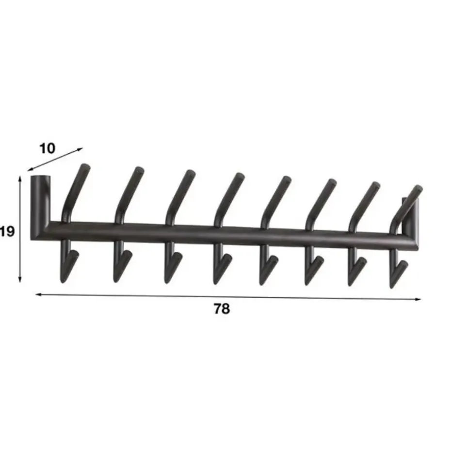 – De wandkapstok is 78 cm breed en 19cm hoog