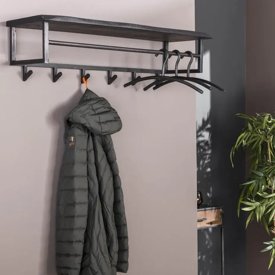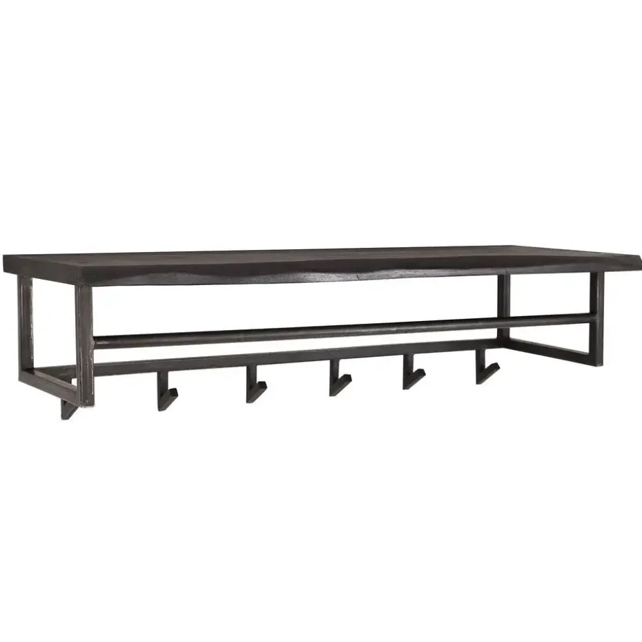 Hoyz – Kapstok Yucon – 6 Haken – Hoedenplank – Massief Acaciahout – Zwart – 100x30x27