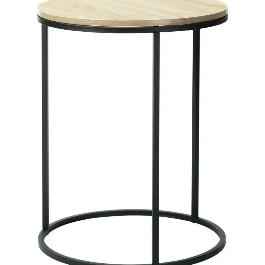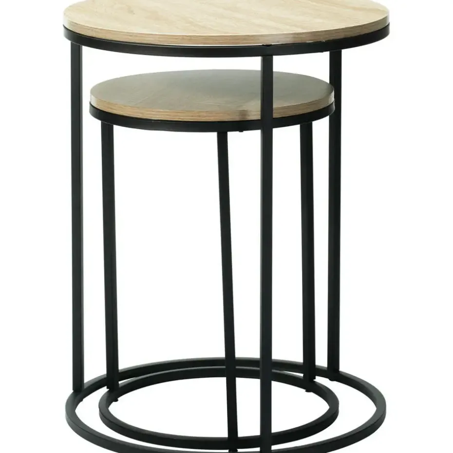 Bijzettafeltjes set van 2x stuks, type Verona. Tafeltjes voor glazen, lampen, boeken en/of bruikbaar als een plantenpot verhoger. Deze bijzet tafels zijn gemaakt van metaal en hout. Afmetingen: D30 x H40 cm en D40 x H50 cm. Kleur onderstel: zwart. Kleur blad: naturel. De neutraal ogende look zorgt ervoor dat deze in elk interieur passen.