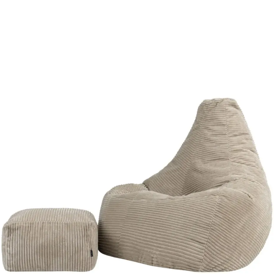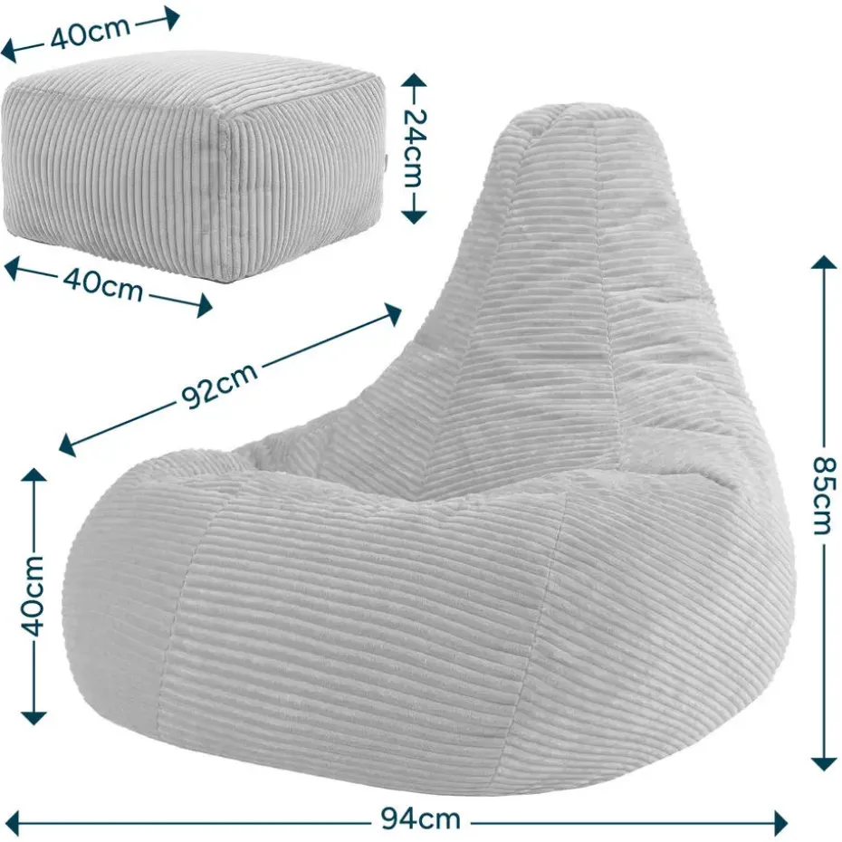 ZACHTE RIBFLUWEELSTOF: Zowel de zitzak als de poef zijn gemaakt van zacht ribfluweel, slijtvast en duurzaam. Zo blijft uw set er lang mooi en zacht uitzien met minimaal onderhoud. Voor extra stevigheid zijn beide afgewerkt met dubbel gestikte naden en een dubbele ritssluiting.