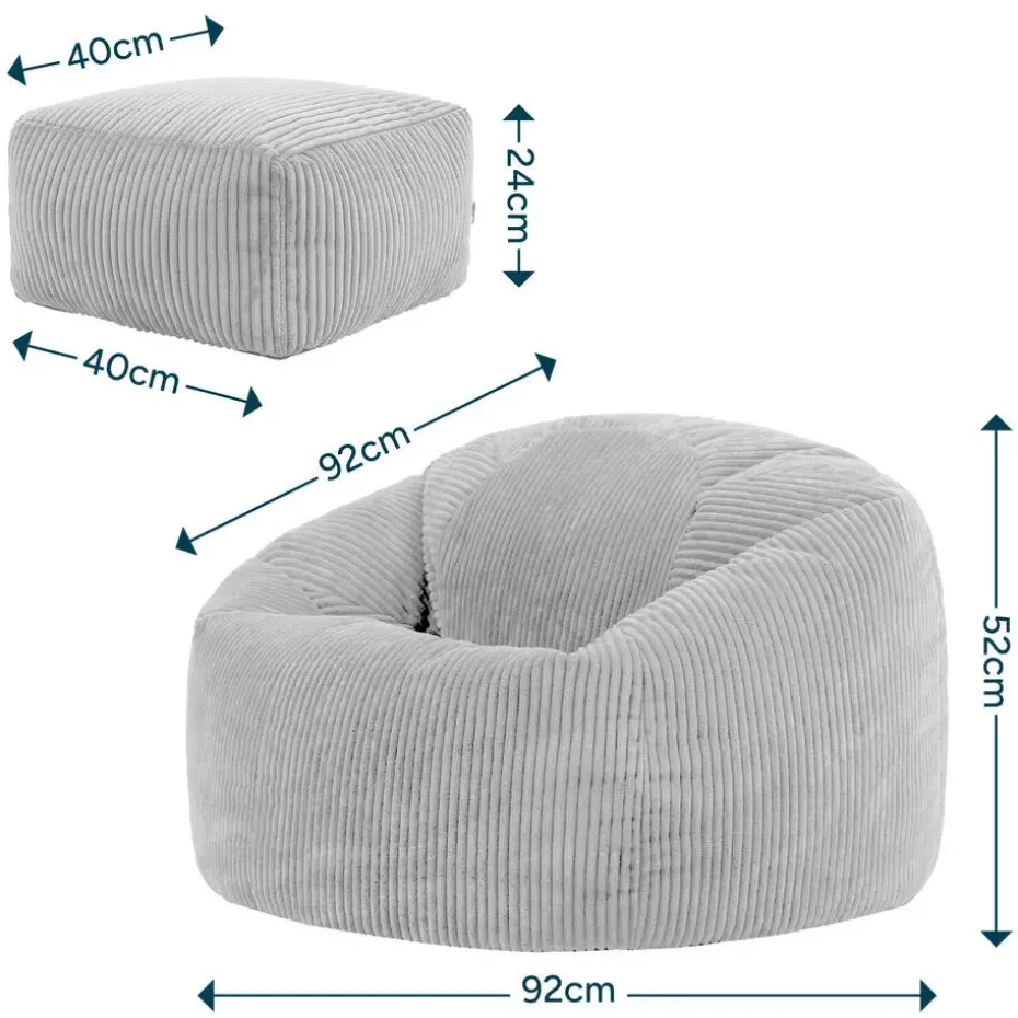 icon – Kingston XL Zitzak Fauteuil met Poef – Ribfluweel – Blauwgroen