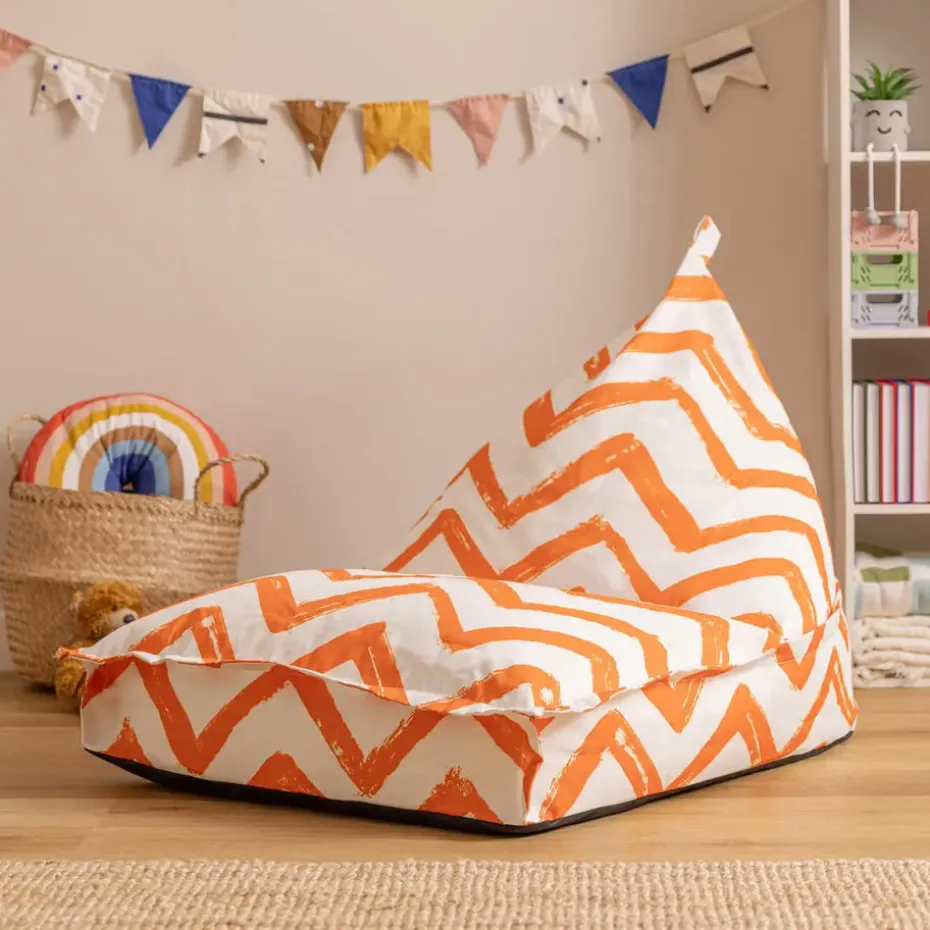 LEUKE BEDRUKTE STOF: Deze kinderzitzak is gemaakt van waterafstotende stof en heeft een speelse geometrische print. De stof is slijtvast, waardoor de zitzak er lang mooi en zacht blijft uitzien met minimaal onderhoud. Voor extra duurzaamheid is hij voorzien van dubbel gestikte naden en een dubbele ritssluiting met een veiligheidsrits aan de buitenkant.