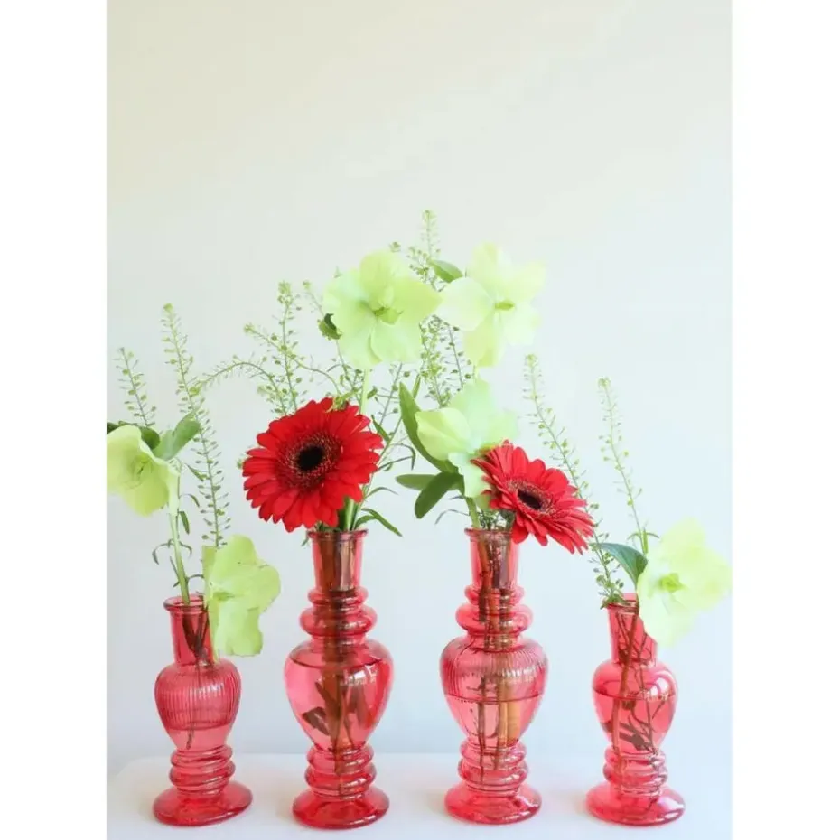 Bloemenvaas/siervaas Venice van gekleurd sierglas in het helder koraal rood. Formaat D5,7 x H15 cm. Deze prachtige basic vaas is uitstekend te gebruiken voor kleinere bloemen, boeketten, takken en als decoratief object voor binnen gebruik. Een vaas met prachtige sierlijke vormen.