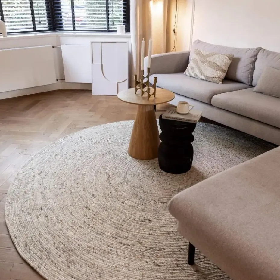 Het ronde wollen vloerkleed Gapo is verkrijgbaar is 6 kleuren Dankzij de bijzondere kleur die in het tapijt is verwerkt, past het vloerkleed bij diverse interieur stijlen. Naast de veelzijdigheid in kleur en stijl, is het karpet letterlijk veelzijdig: het kleed kan aan beide zijden gebruikt worden. Het vloerkleed heeft namelijk geen backing. En een wollen kleed zorgt natuurlijk voor een warme, knusse en zachte uitstraling in je woon- of slaapkamer maar ook in je kantoor. Daarnaast voelt het kleed heerlijk aan je voeten! Dit wollen tapijt is verkrijgbaar in vier kleuren en vier verschillende maten: 150ø,180ø, 220ø en 250ø. Voor iedereen zit er wel een passend formaat tussen.