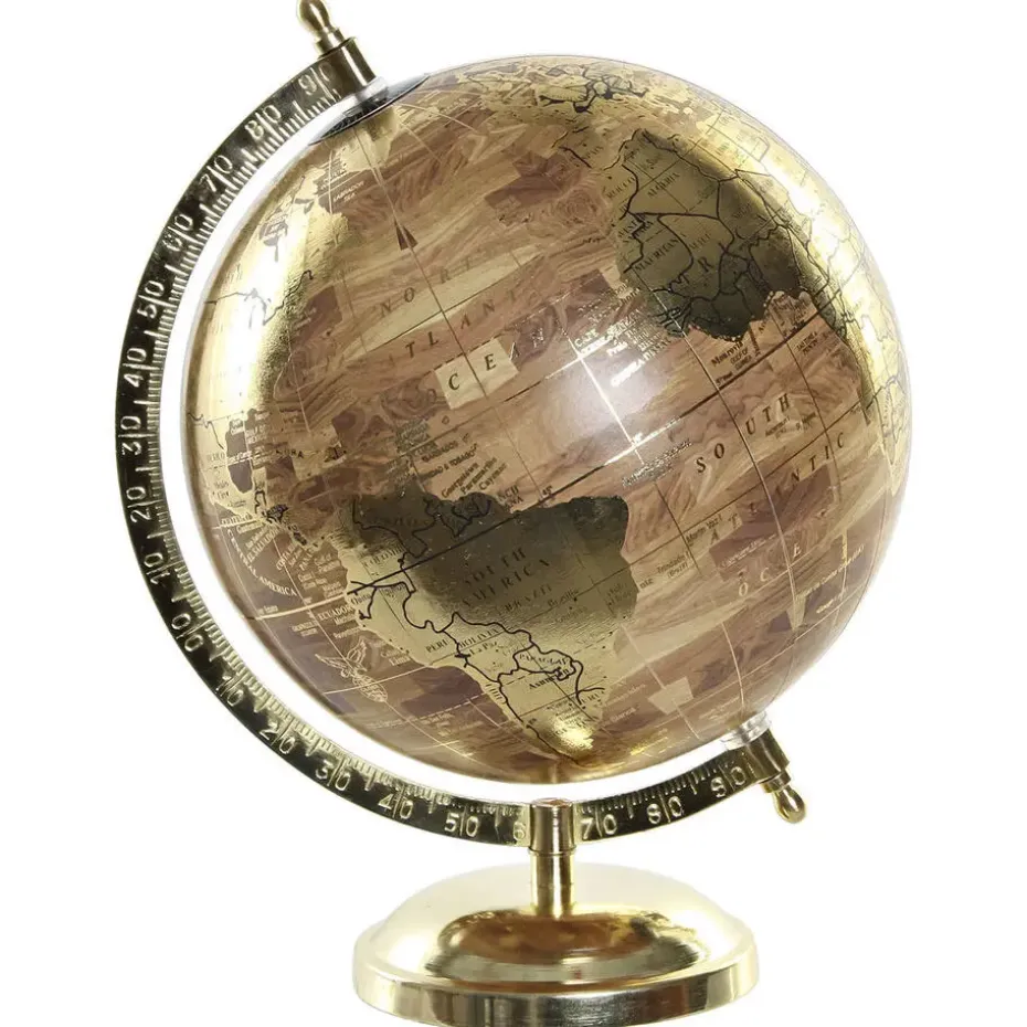 Decoratie wereldbol/globe op metalen voet. Home decoratie artikel. Afmetingen: diameter is 20 cm en hoogte is 28 cm. Op de wereldbol zijn alle landen en continenten te zien. Basis globe kleur is goud. Wereldbollen, topografie leren, vakanties plannen. Woondecoratie artikelen voor meer sfeer. En nog leerzaam ook.