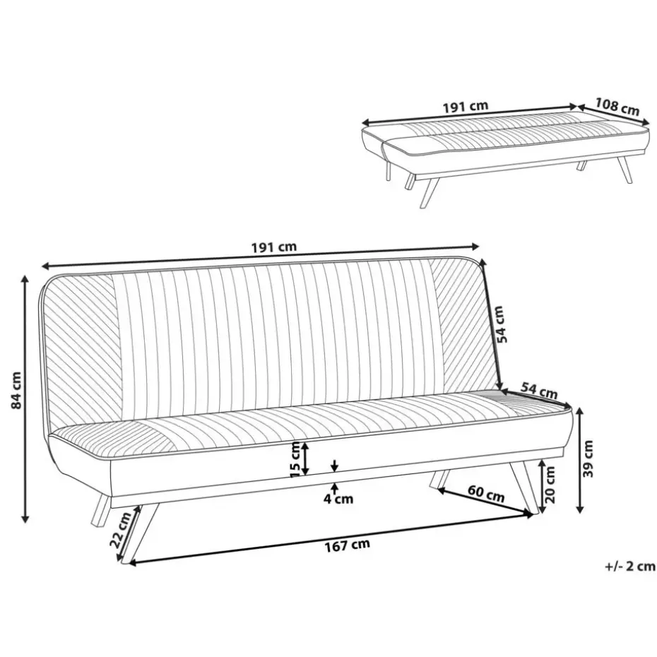 Belangrijkste eigenschappen: Mogelijk om tot een comfortabel bed te veranderen, Brede, dik gestoffeerd zitvlak, Perfect voor zowel slaapkamer als woonkamer, Past uitstekend in elk interieur, De waterafstotende afwerking zorgt ervoor dat gemorste vloeistoffen op het oppervlak blijven, Gebruiksvriendelijke bediening