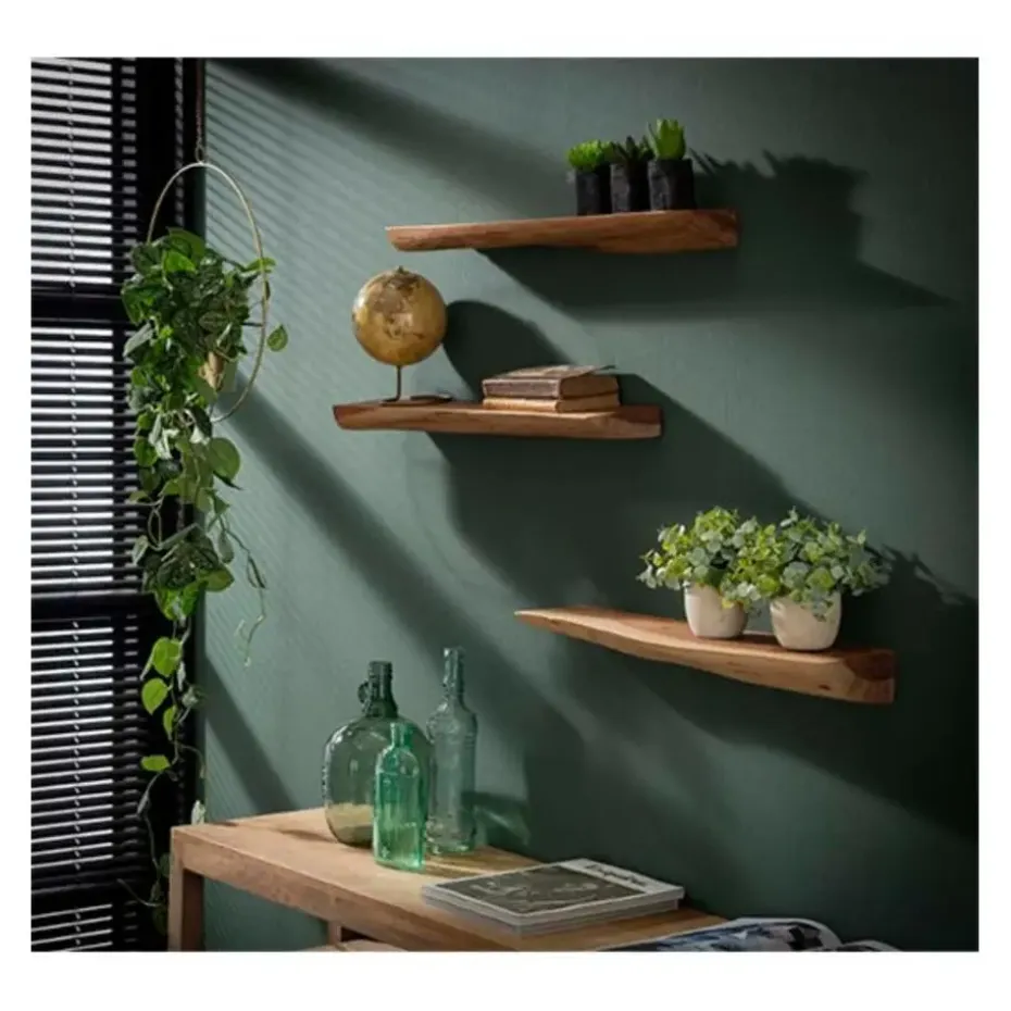 Met deze drie wandplanken Davis breng je elk leeg hoekje van een muur tot leven. Elke kamer krijgt een aparte look met deze bijzondere wandplanken. Je stelt ze onderling tegenover elkaar op zoals jij dat wil. Een plant, een stapeltje boeken of je favoriete fotolijstjes komen nu nog meer tot hun recht. De planken zijn op zich zeer decoratief. Met enkele accessoires erbij zijn het echte blikvangers.
