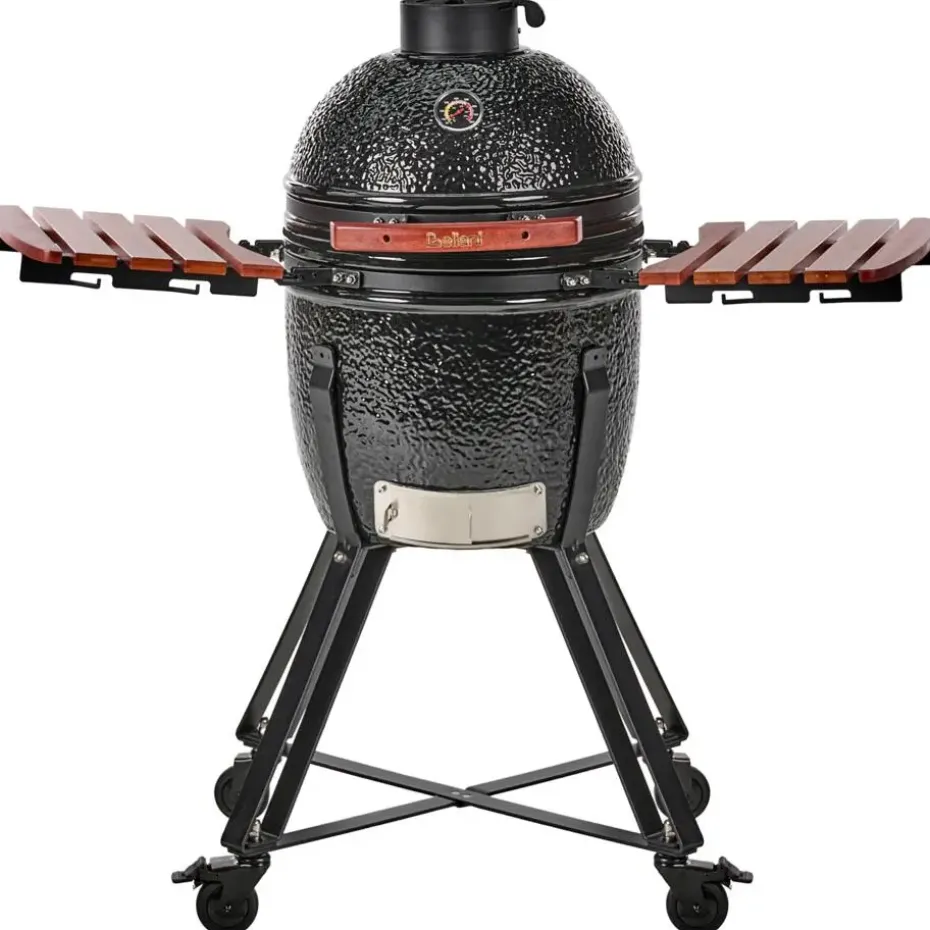 Belangrijkste eigenschappen: Met haakjes voor handdoeken en keukengerei, Thermometer voor het regelen van de kooktemperatuur, Verrijdbare poten voor het eenvoudig verplaatsen, Voor grillen, roken, bakken en braden in één toestel, Ontworpen om urenlang houtskool te branden met een constante warmte, Speciaal gemaakt voor gebruik buitenshuis, Hoge kwaliteit