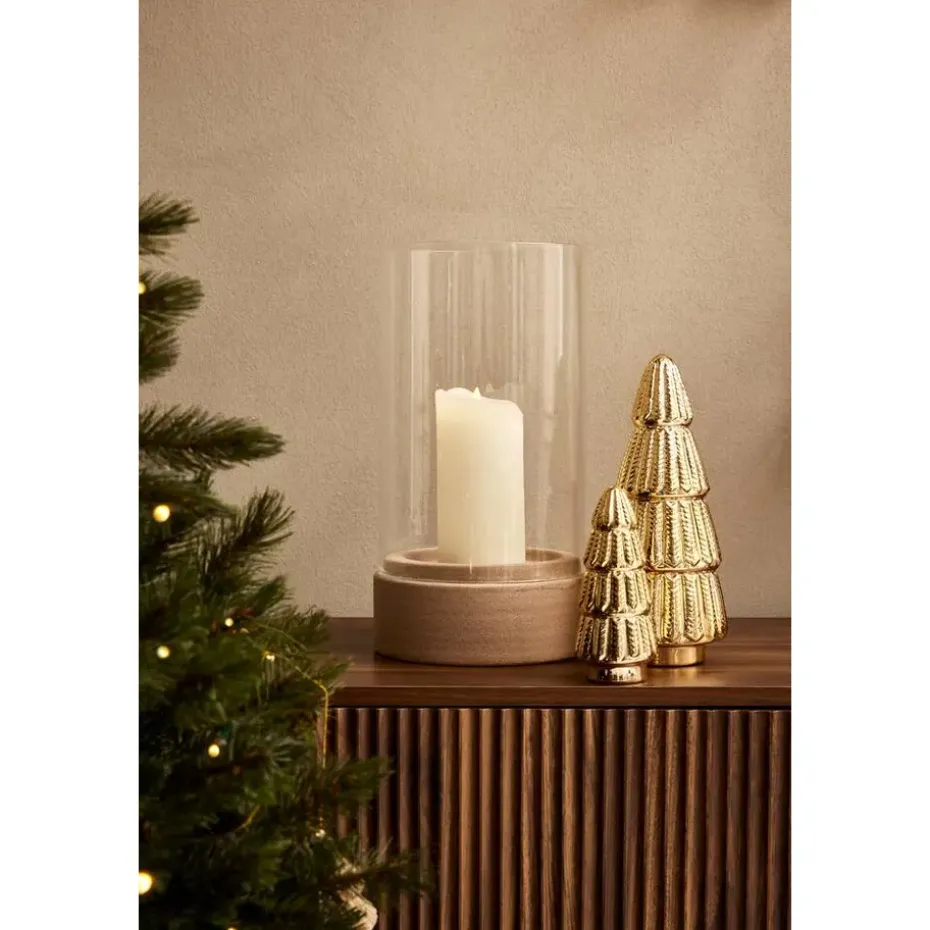 Kandelaar Nora is gemaakt van keramiek en is beige van kleur. De kaarshouder is 35 cm hoog met een diameter van 19 cm. De houder is geschikt voor zowel stompkaarsen als waxinelichtjes.
