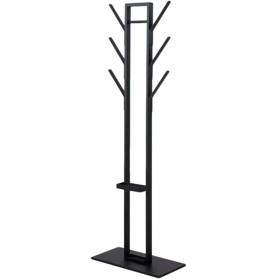 Kapstok Perna is een opberger voor kledingstukken en paraplu’s bevestigd op een stevige voet. Gemaakt van zwart staal.