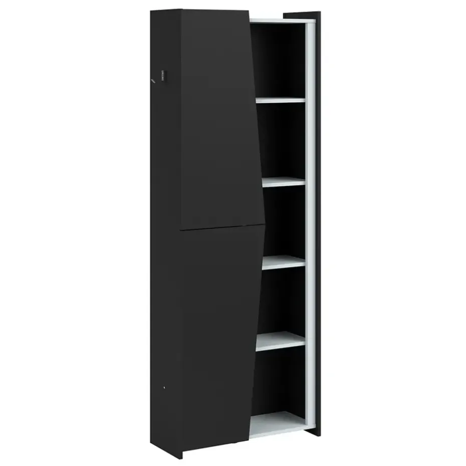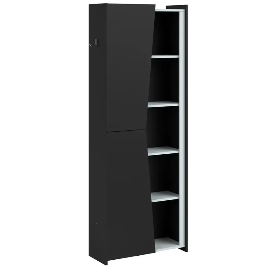 Kast Levi is ideaal voor op de slaapkamer. Deze zwarte wandkast heeft de afmetingen 181x67x28 cm en bevat LED verlichting. Met kast Levi heb je genoeg opslag ruimte voor bijvoorbeeld boeken of andere accessoires.